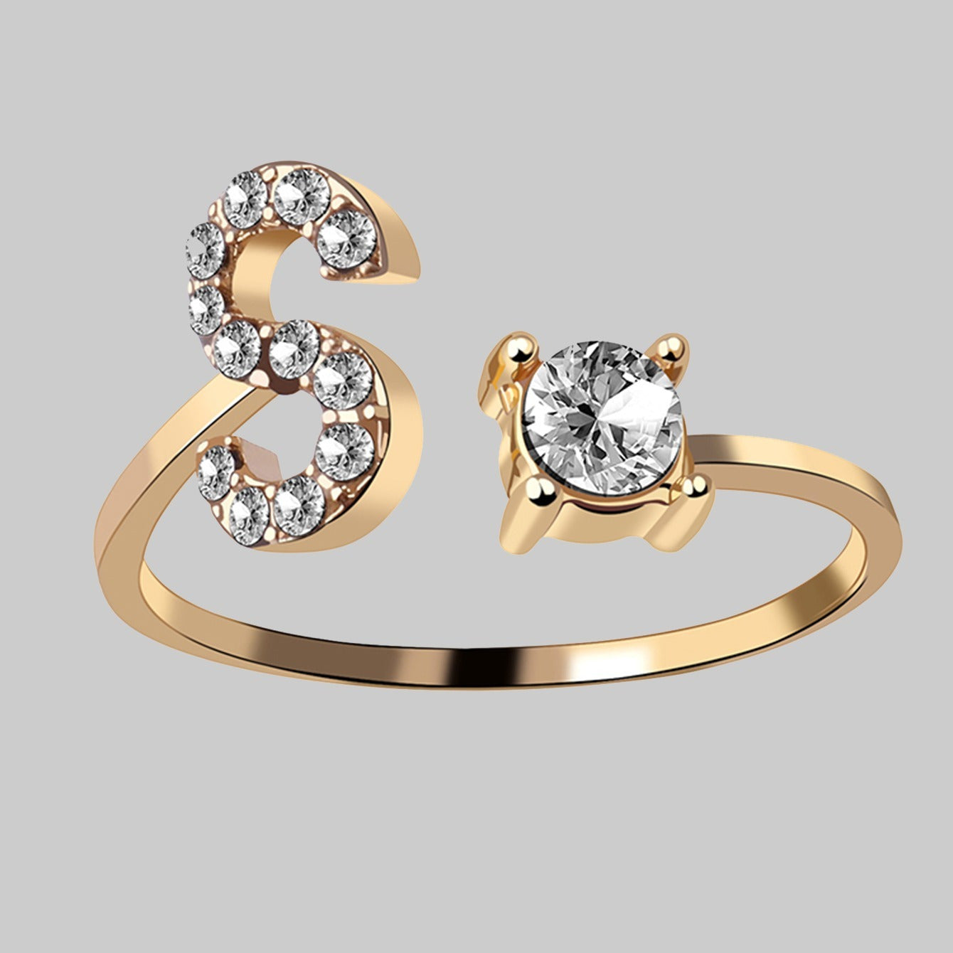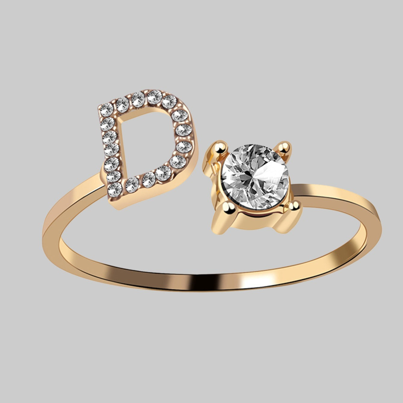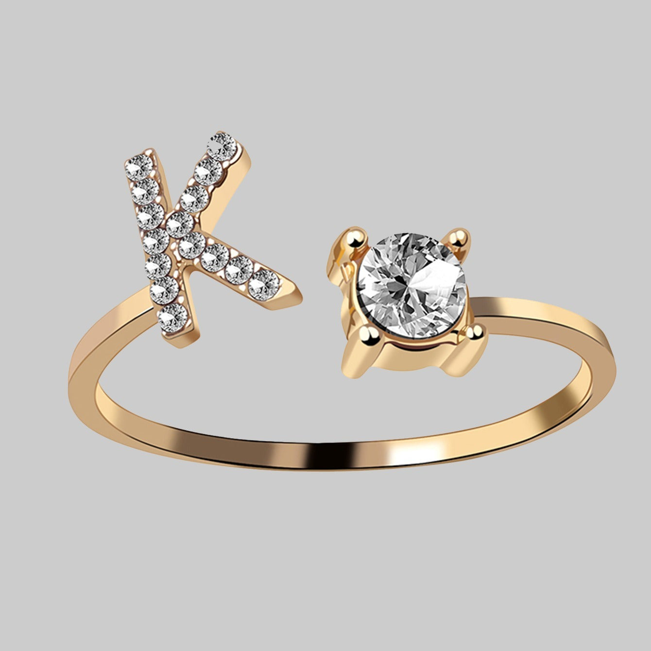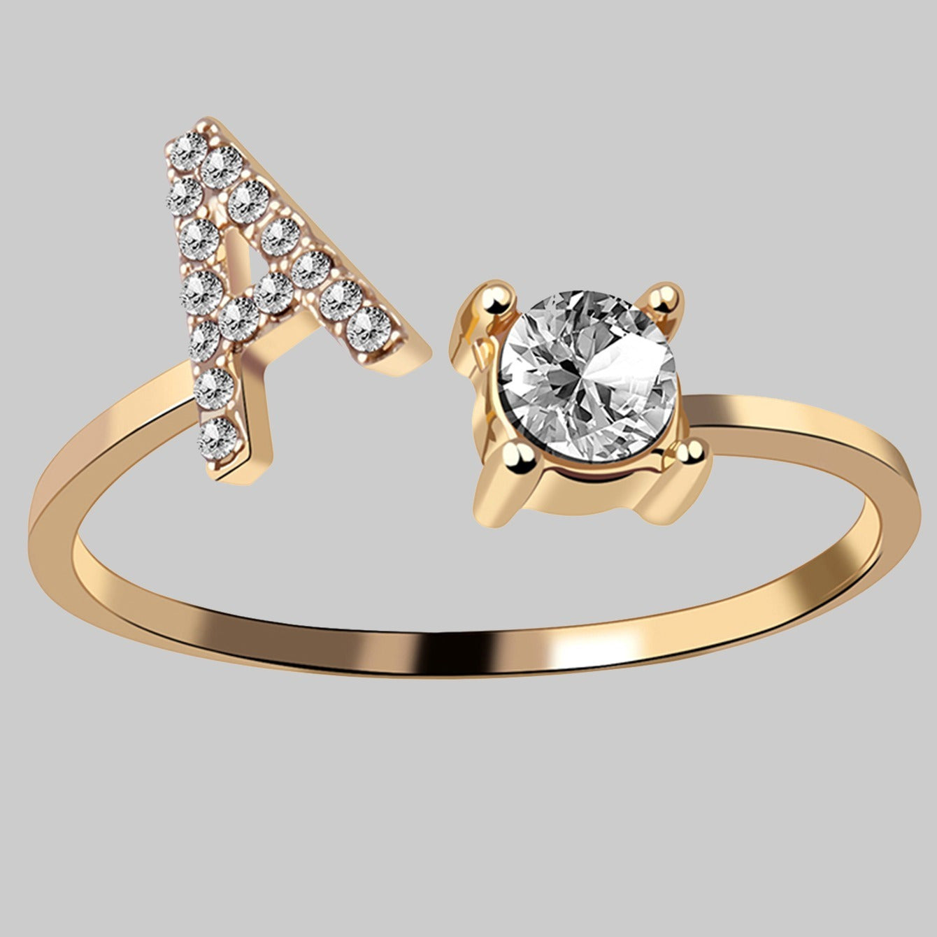 Increase quantity for خواتم ذهبية 26 حرفًا للنساء مرصعة بحجر الراين الزركون خواتم مفتوحة قابلة للتعديل هدايا إكسسوارات مجوهرات