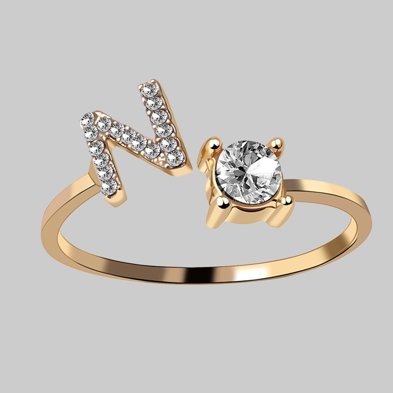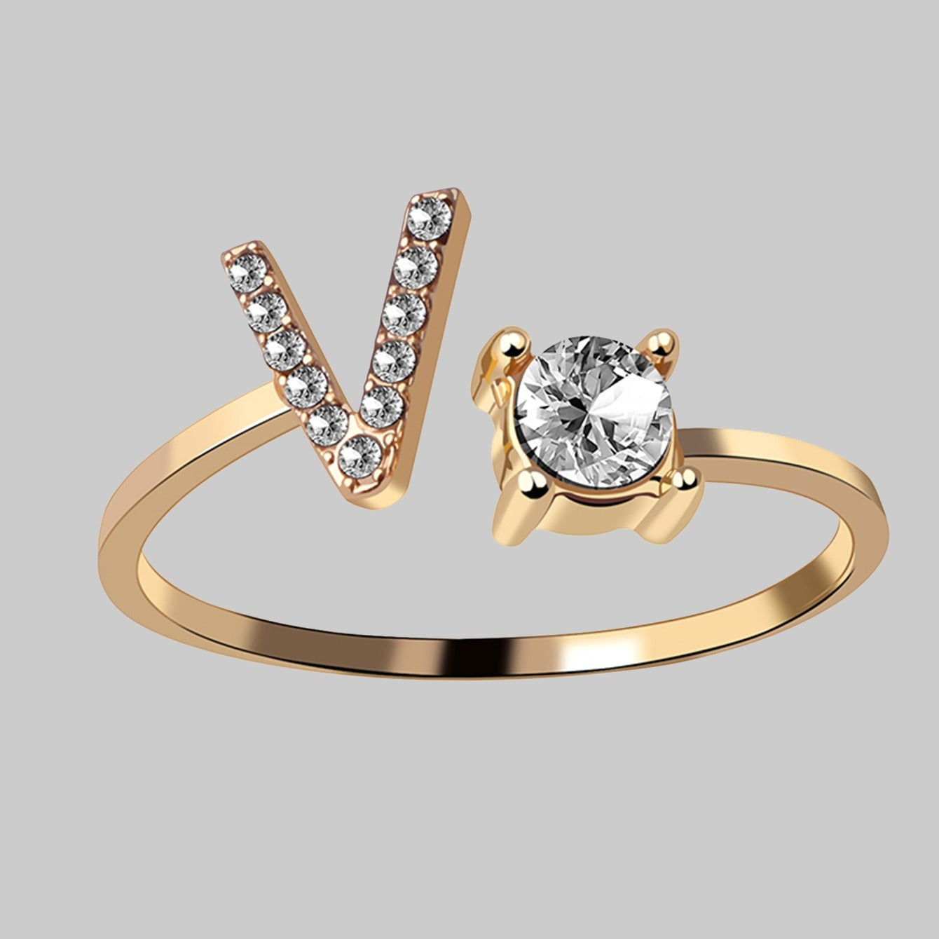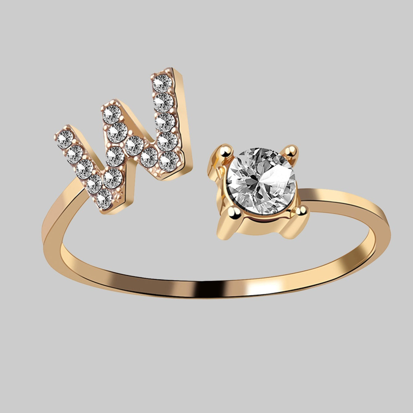 Increase quantity for خواتم ذهبية 26 حرفًا للنساء مرصعة بحجر الراين الزركون خواتم مفتوحة قابلة للتعديل هدايا إكسسوارات مجوهرات