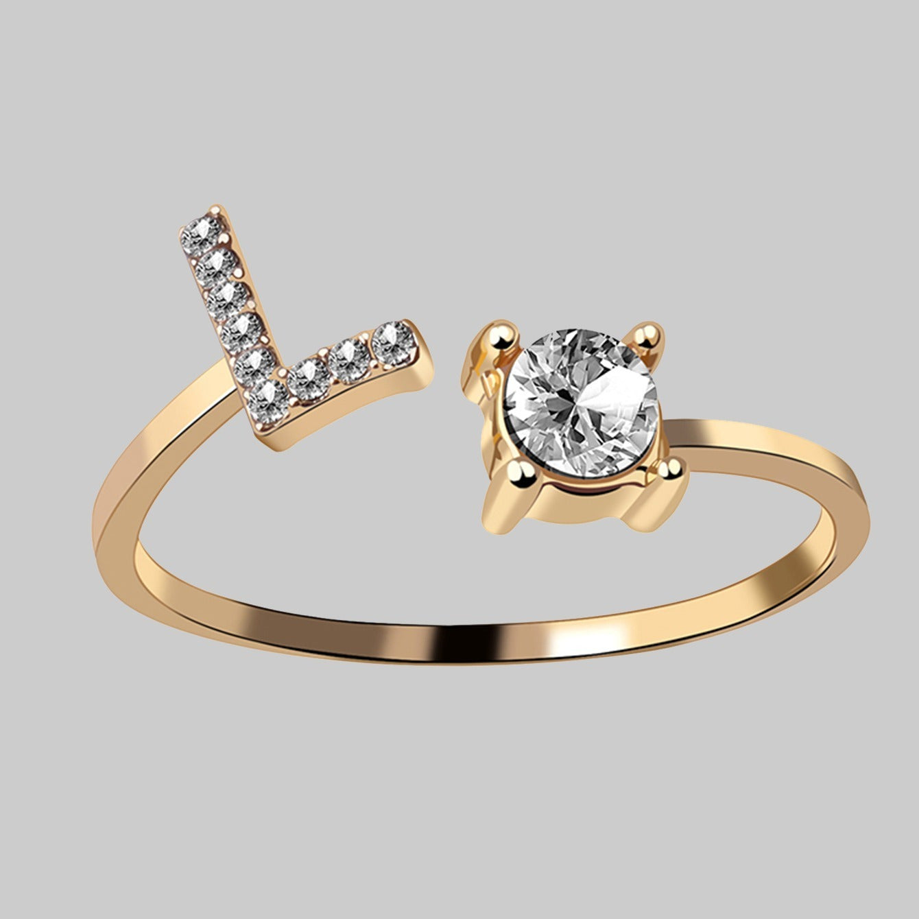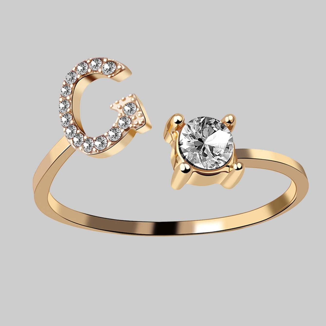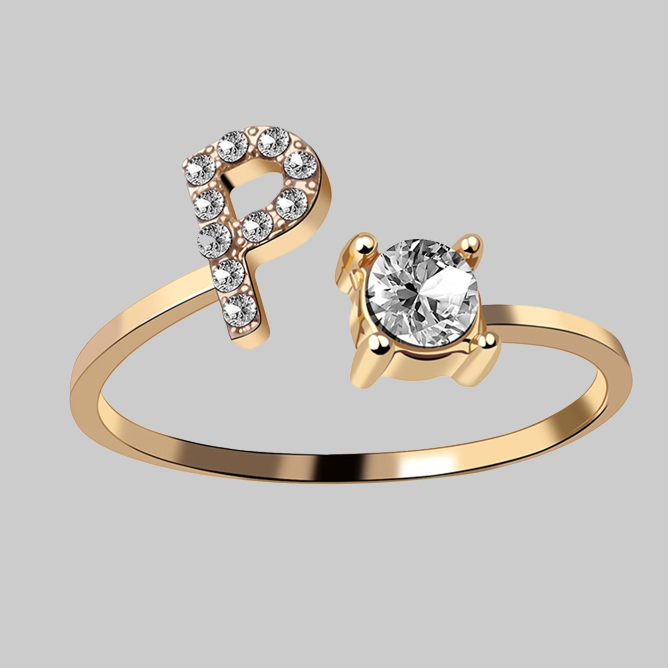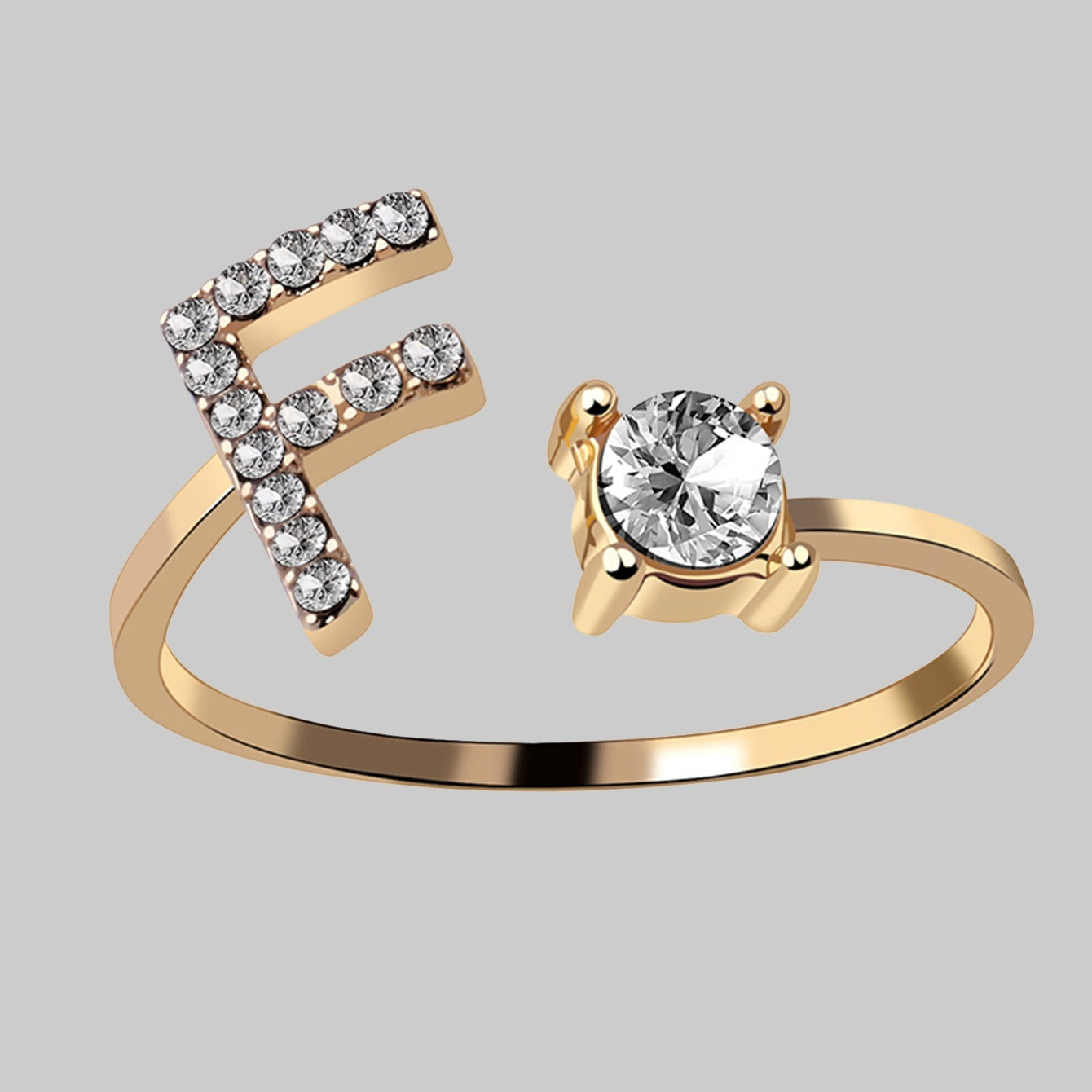 Increase quantity for خواتم ذهبية 26 حرفًا للنساء مرصعة بحجر الراين الزركون خواتم مفتوحة قابلة للتعديل هدايا إكسسوارات مجوهرات