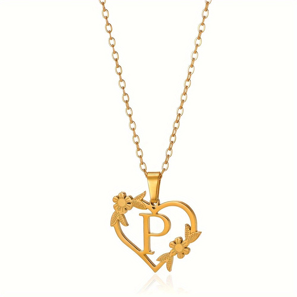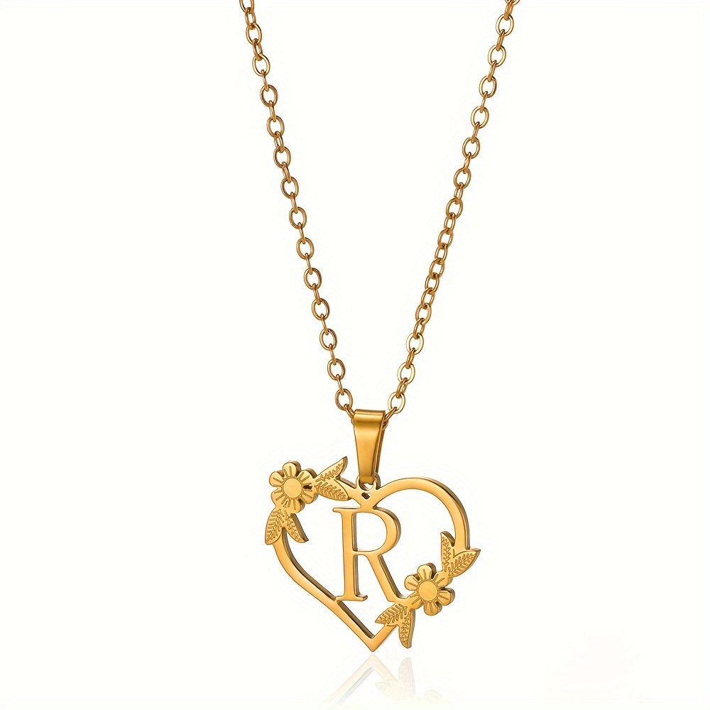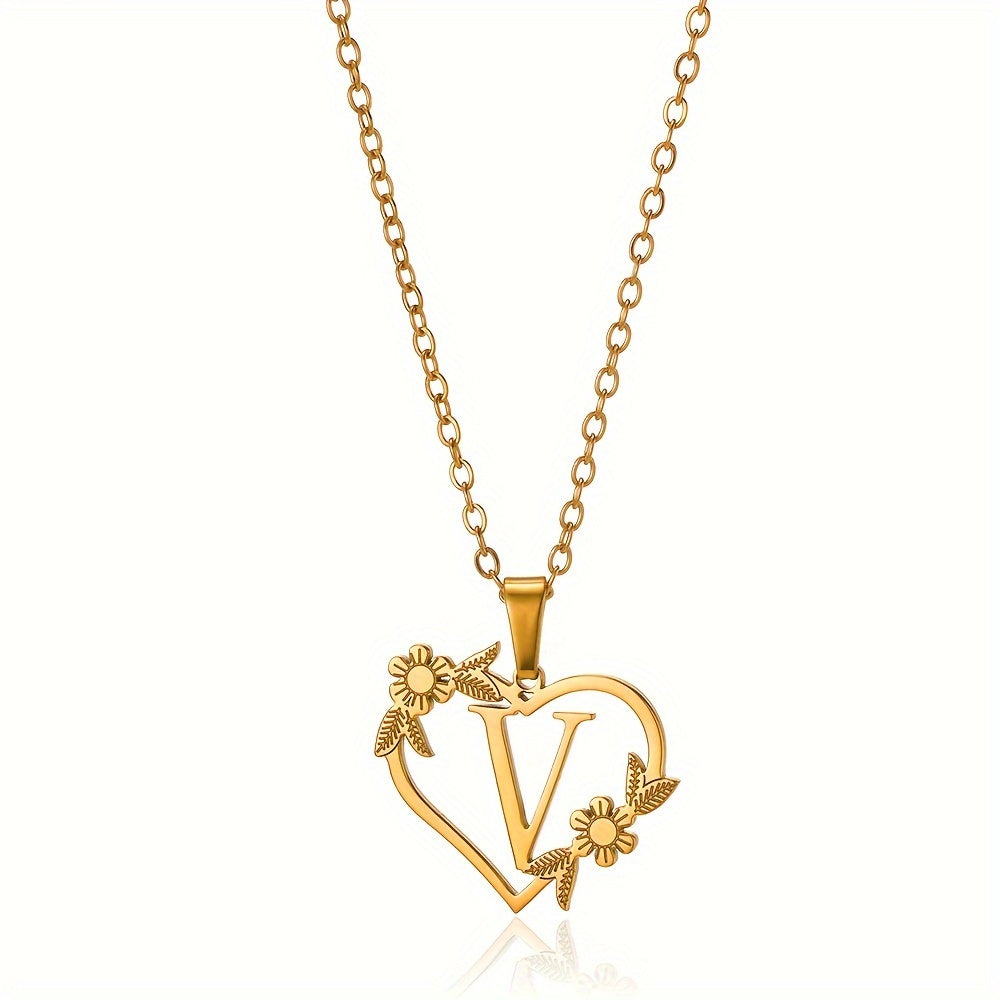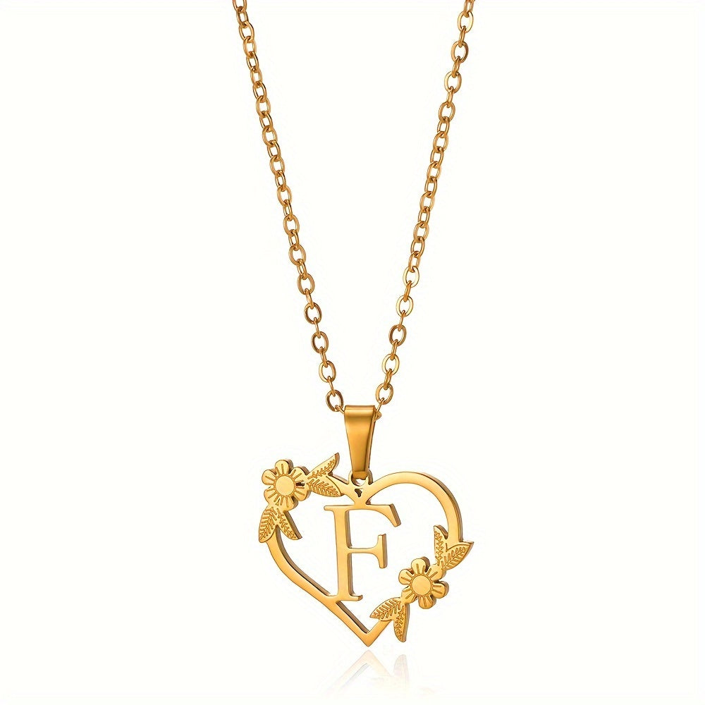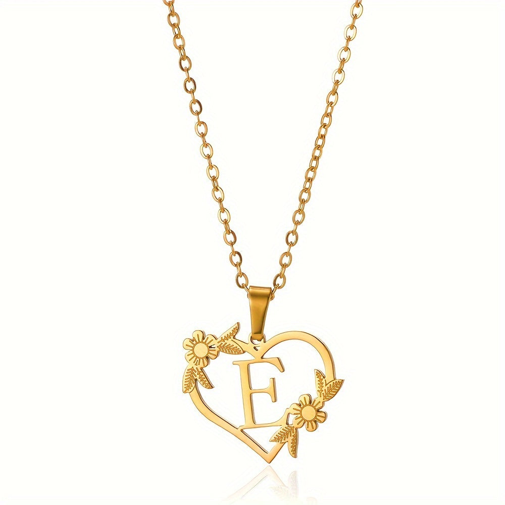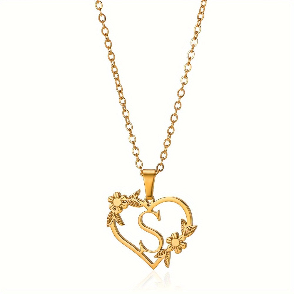 قلادة على شكل قلب مزينة بزهرة مطلية بالذهب عيار 18 قيراطًا من الفولاذ المقاوم للصدأ لتزيين العنق