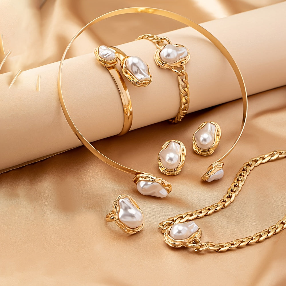 5 قطعة/المجموعة رومانسية القلب كوارتز ساعة لامعة حجر الراين التناظرية بو الجلود ساعة معصم ومجموعة مجوهرات، هدية للنساء لها
