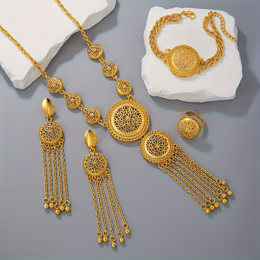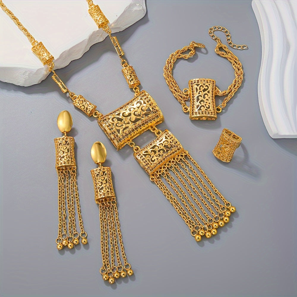 مجموعة مجوهرات نحاسية تتكون من خاتم وسوار مرصعة بالزركون اللامع بأناقة وفخامة للنساء هدية زفاف