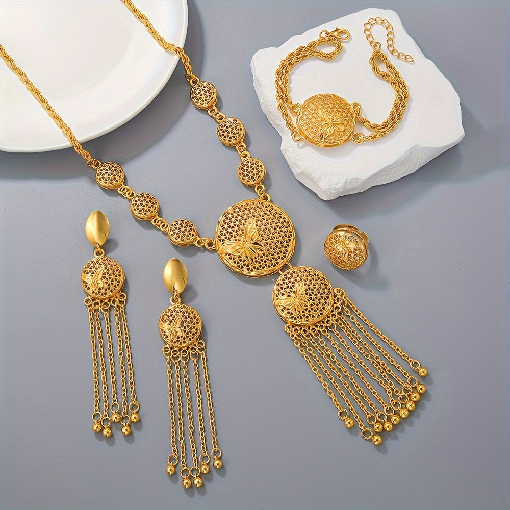 مجموعة ساعات يد نسائية أنيقة بتصميم فراشة ومرصعة بالراين، مع مجموعة مجوهرات قلبية، هدية للأم