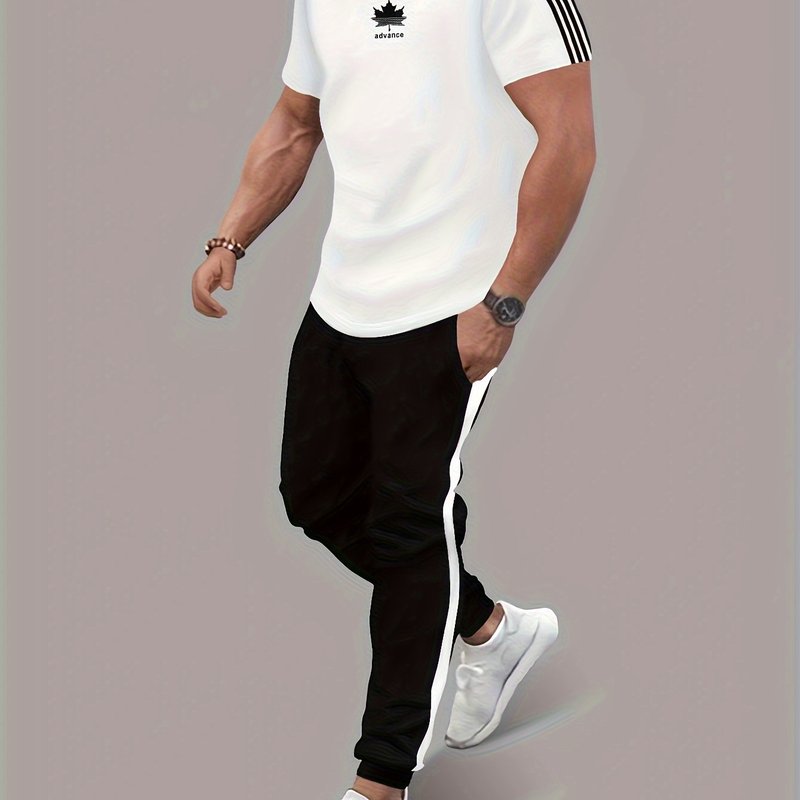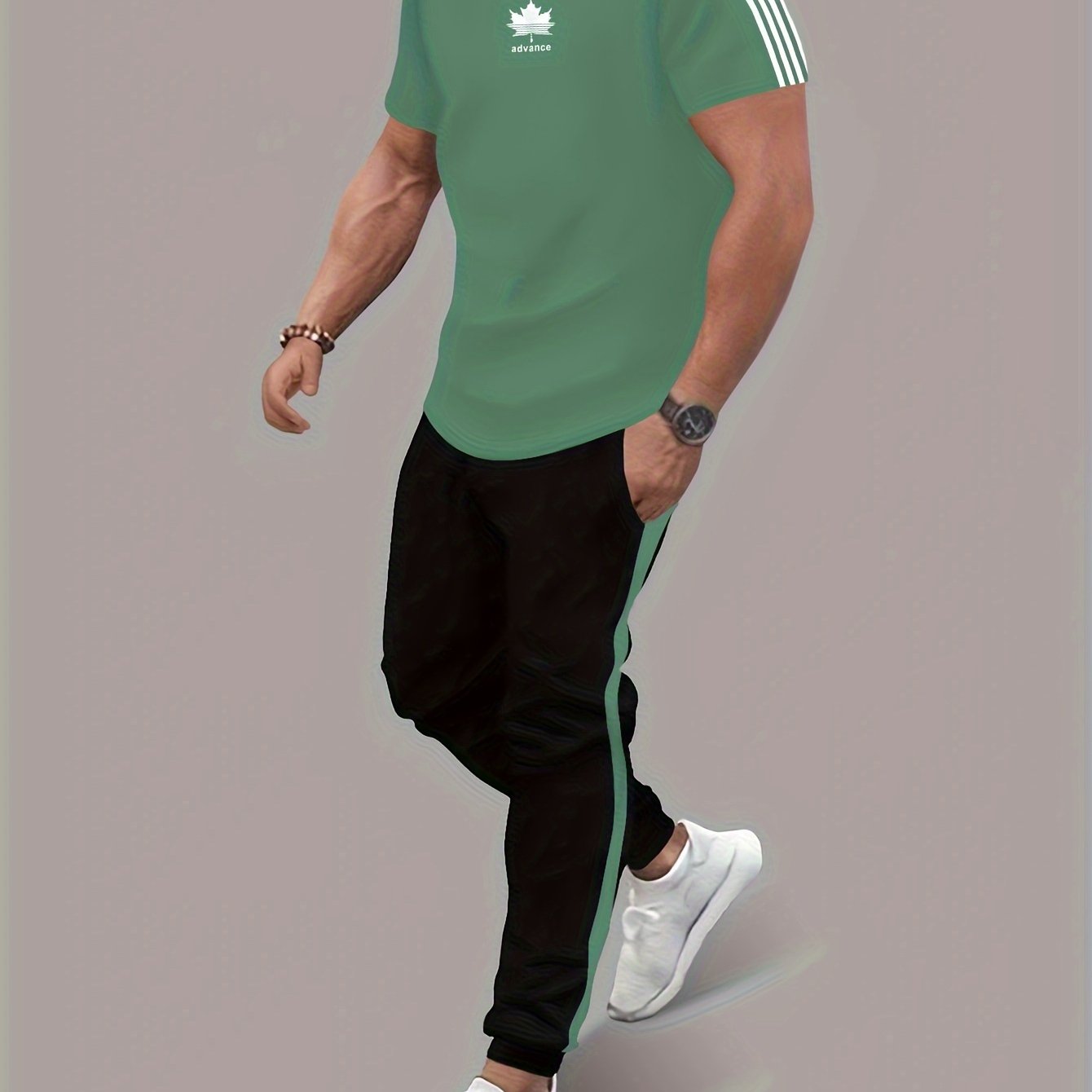 Increase quantity for ملابس رجالية مكونة من قطعتين، تي شيرت كاجوال بياقة دائرية وأكمام قصيرة وبنطلون رياضي للركض للصيف، ملابس رجالية