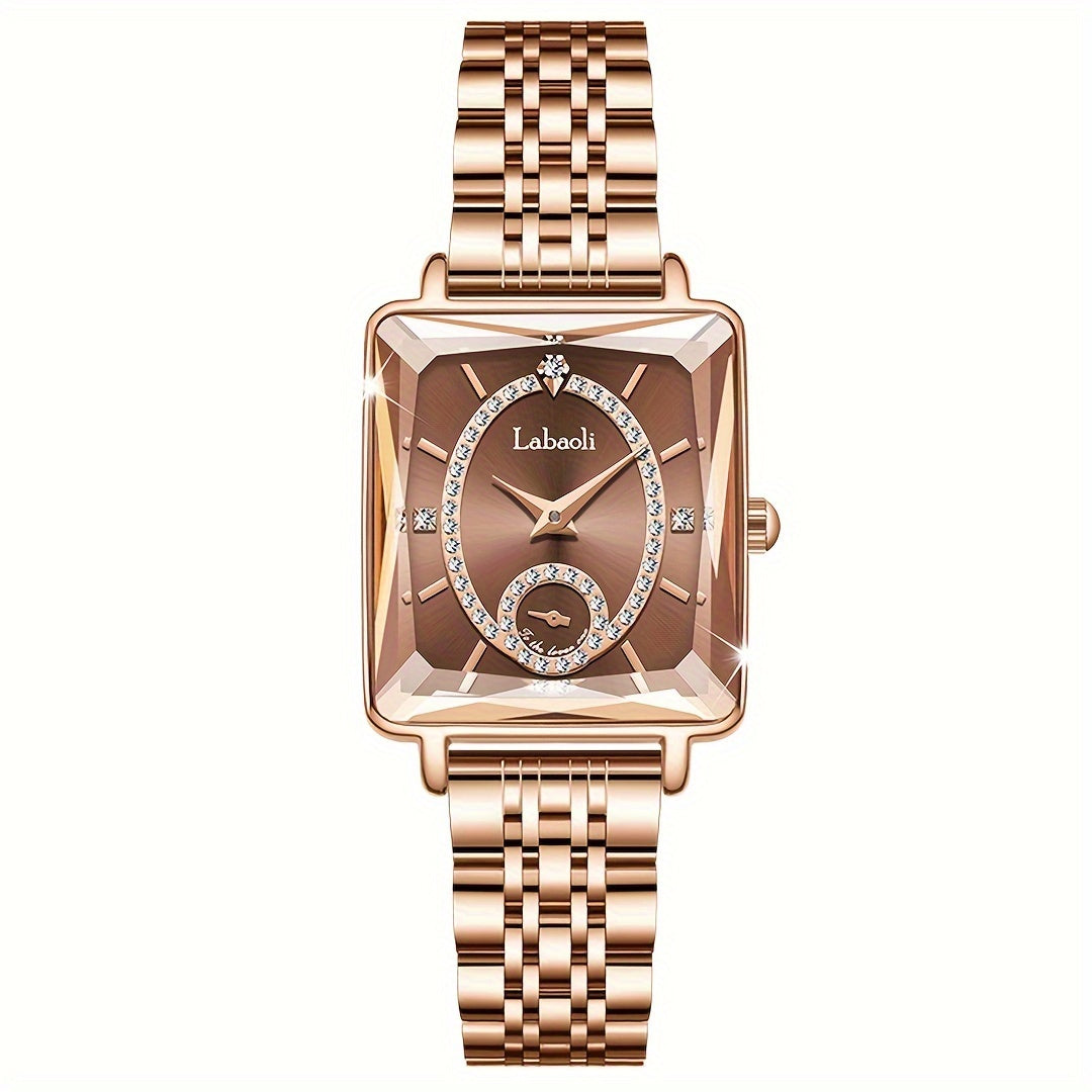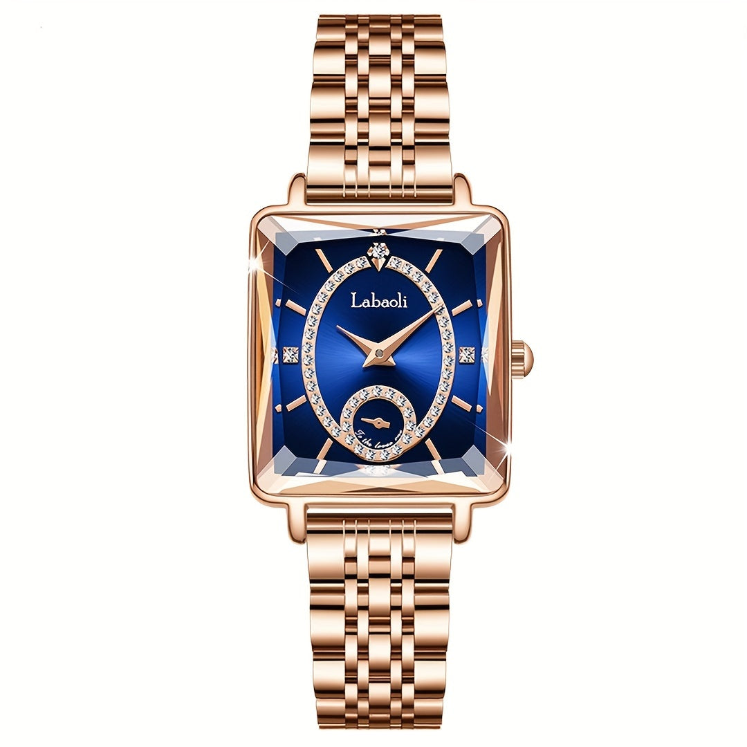 Increase quantity for ساعة نسائية فاخرة بقطعة مربعة من الكوارتز ومينا مرصعة بالراين الأنيقة وحزام من الفولاذ المقاوم للصدأ