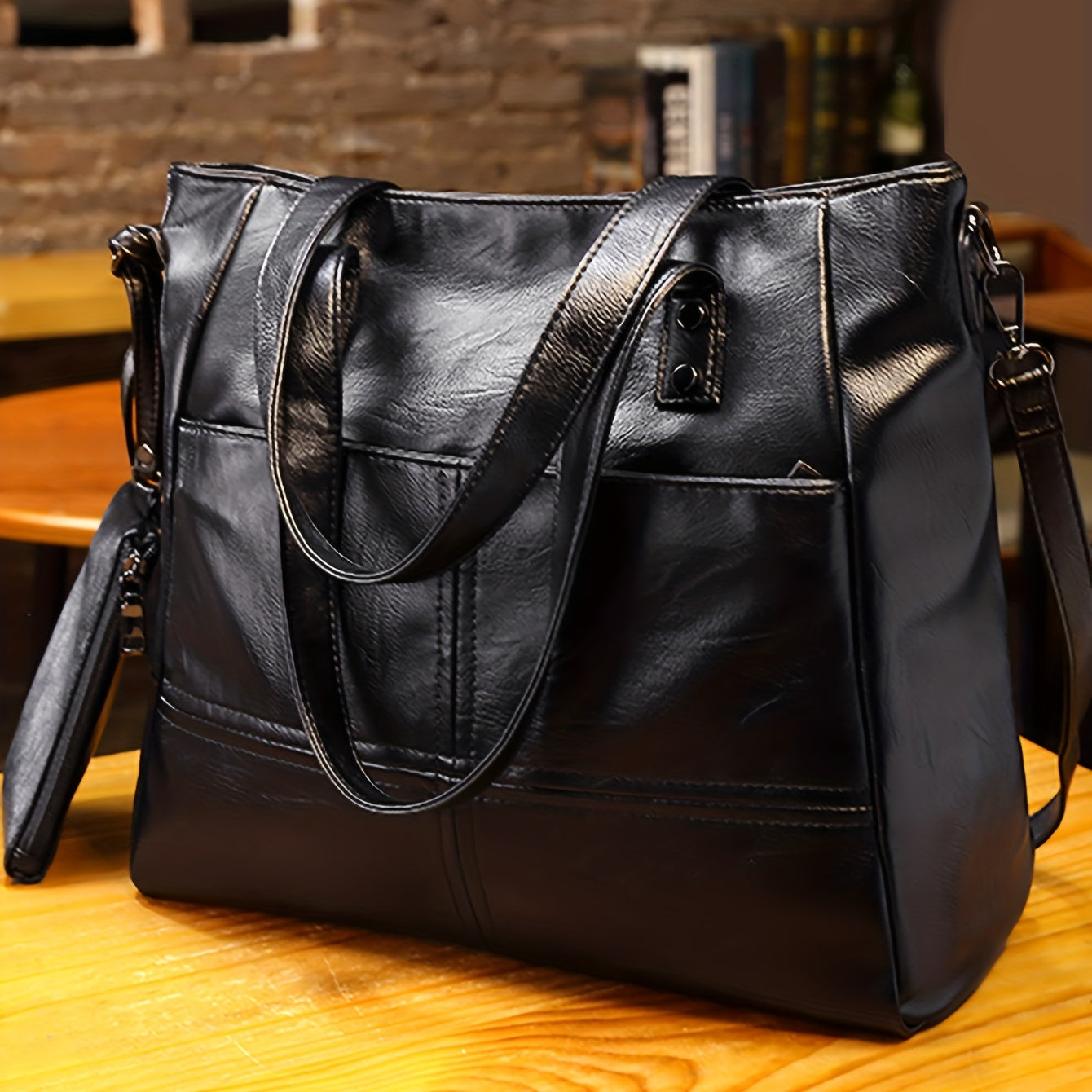 Decrease quantity for حقيبة يد كلاسيكية بلون سادة، حقيبة كتف ذات سعة كبيرة، حقيبة يد نسائية من جلد البولي يوريثان