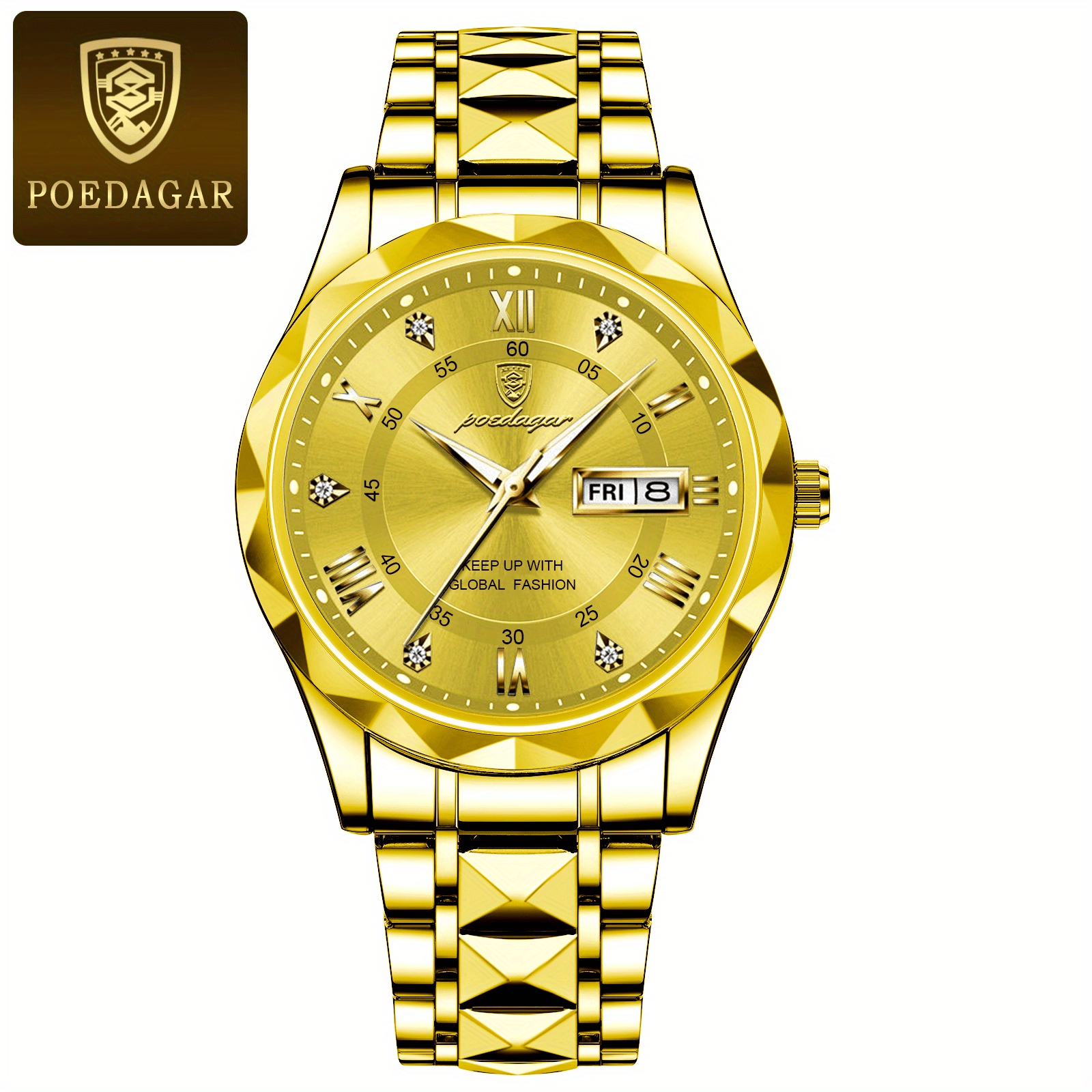 POEDAGAR ساعة مقاومة للماء للرجال، ساعة كوارتز أنيقة للرجال، اختيار مثالي للهدايا