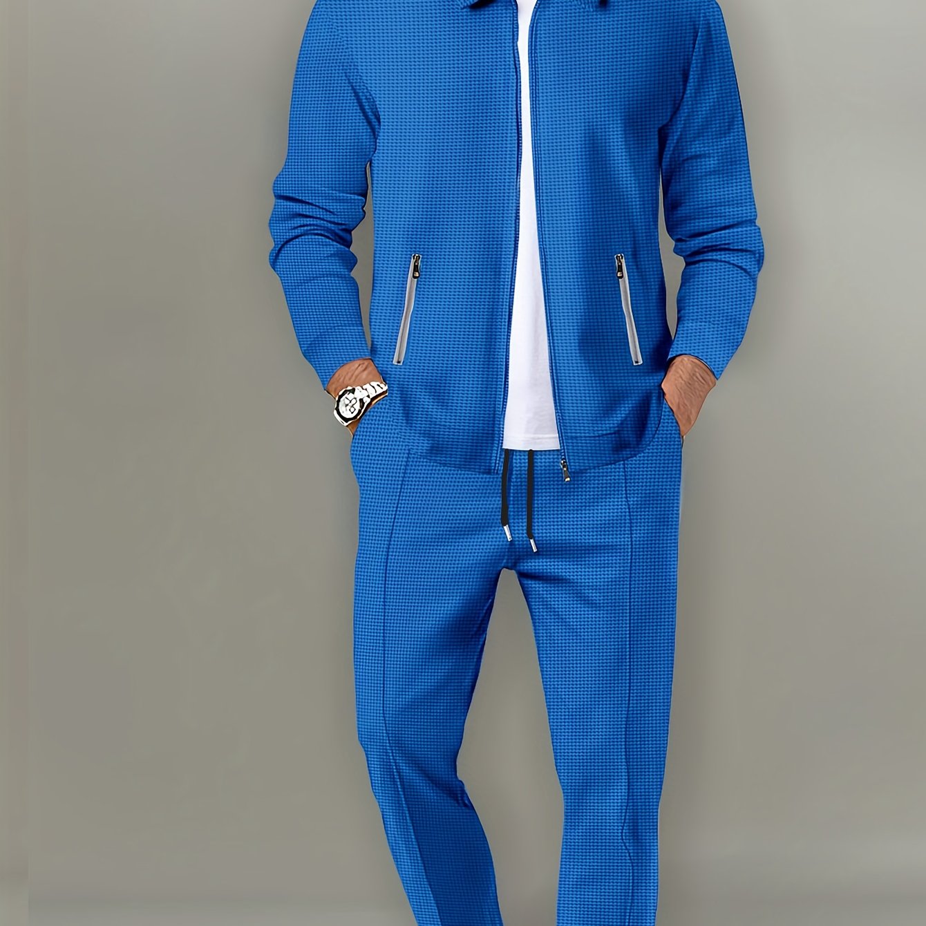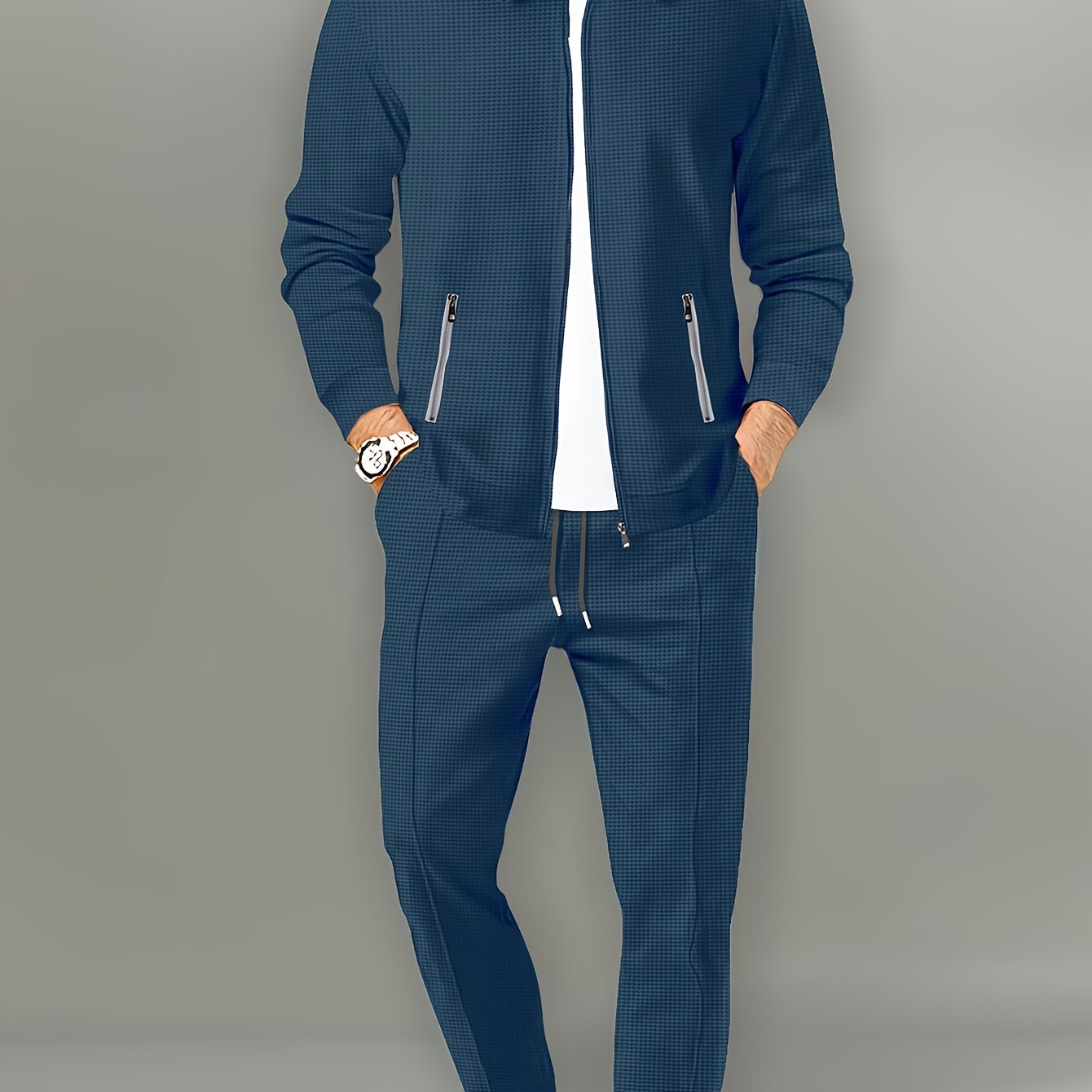 سترة رجالية صوفية بغطاء سحاب وبنطلون طويل للخريف والربيع - مجموعة كاجوال خارجية