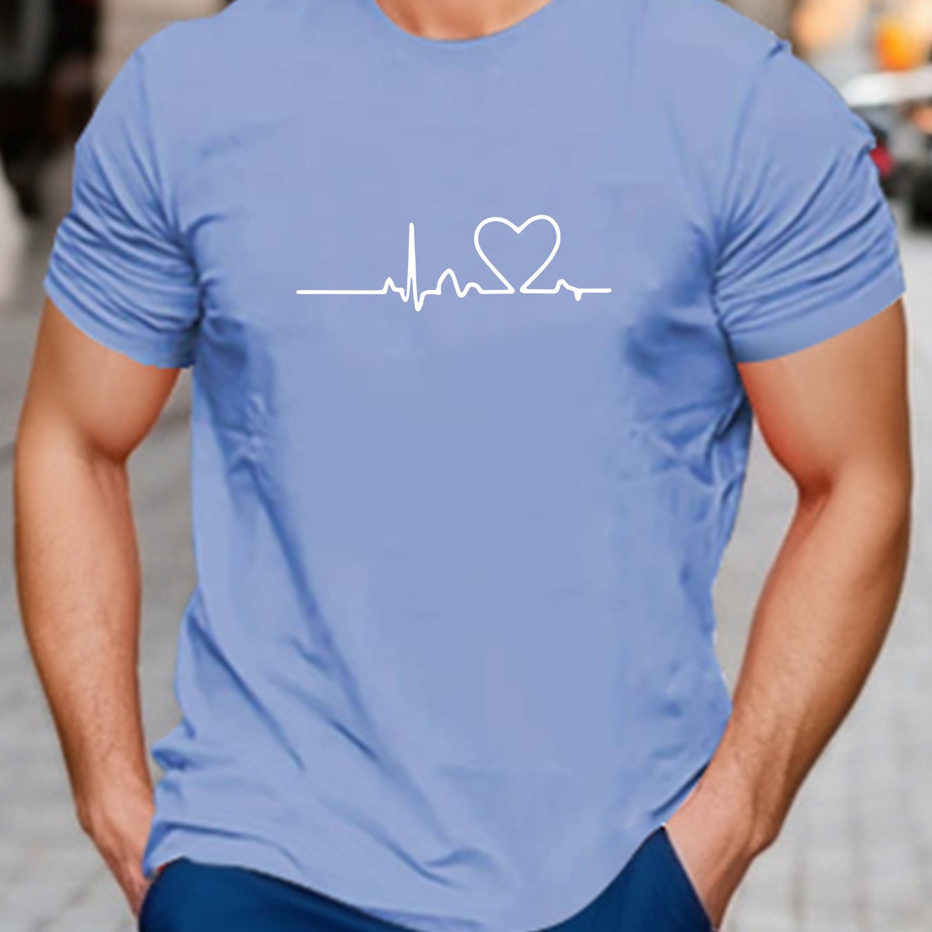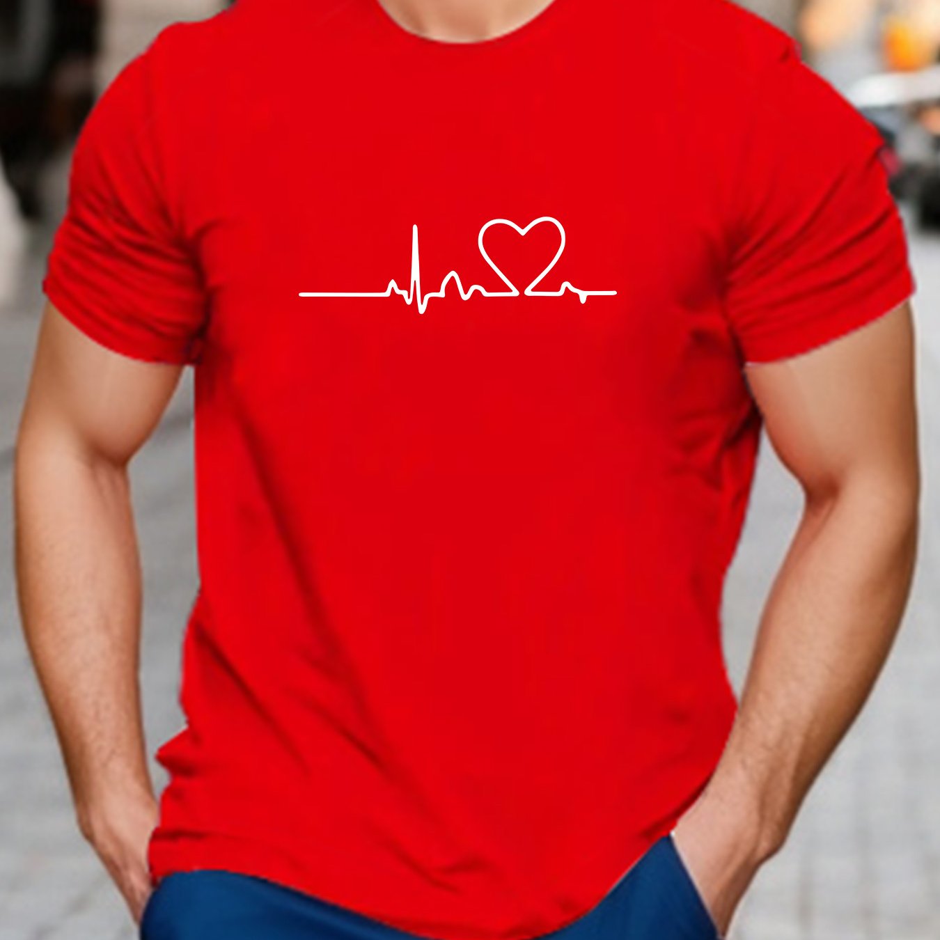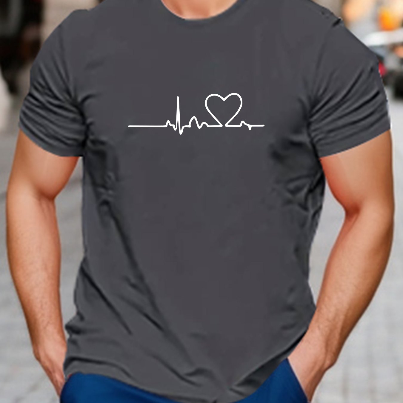 Increase quantity for قميص رجالي قصير الأكمام بطباعة رسوم قلب ونبض القلب، تي شيرت كاجوال برقبة مستديرة، ملابس صيفية مريحة ومتعددة الاستخدامات وخفيفة الوزن للارتداء اليومي