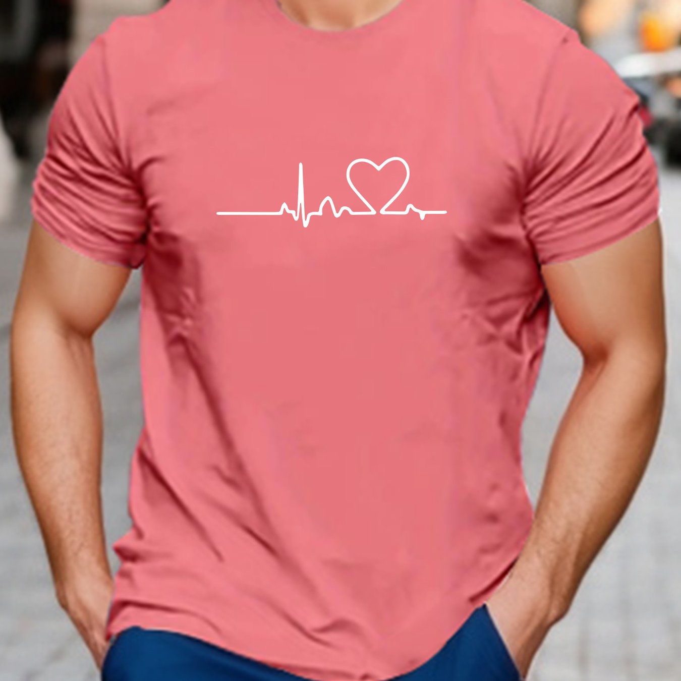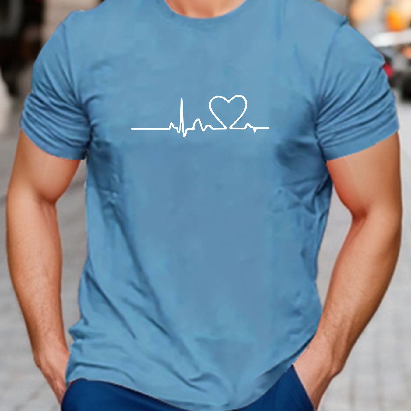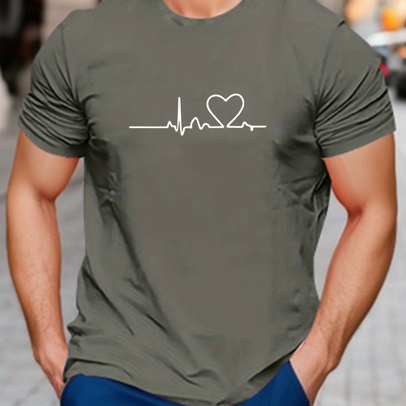 Increase quantity for قميص رجالي قصير الأكمام بطباعة رسوم قلب ونبض القلب، تي شيرت كاجوال برقبة مستديرة، ملابس صيفية مريحة ومتعددة الاستخدامات وخفيفة الوزن للارتداء اليومي