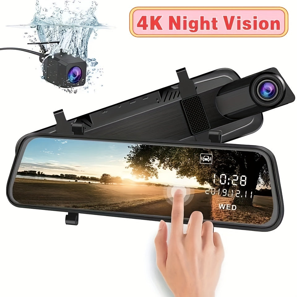 4K Dual Dash Cam 10/9.66 بوصة HD 3580P شاشة تعمل باللمس مسجل القيادة مرآة مراقبة الرؤية الخلفية بنيت في WIFI GPS