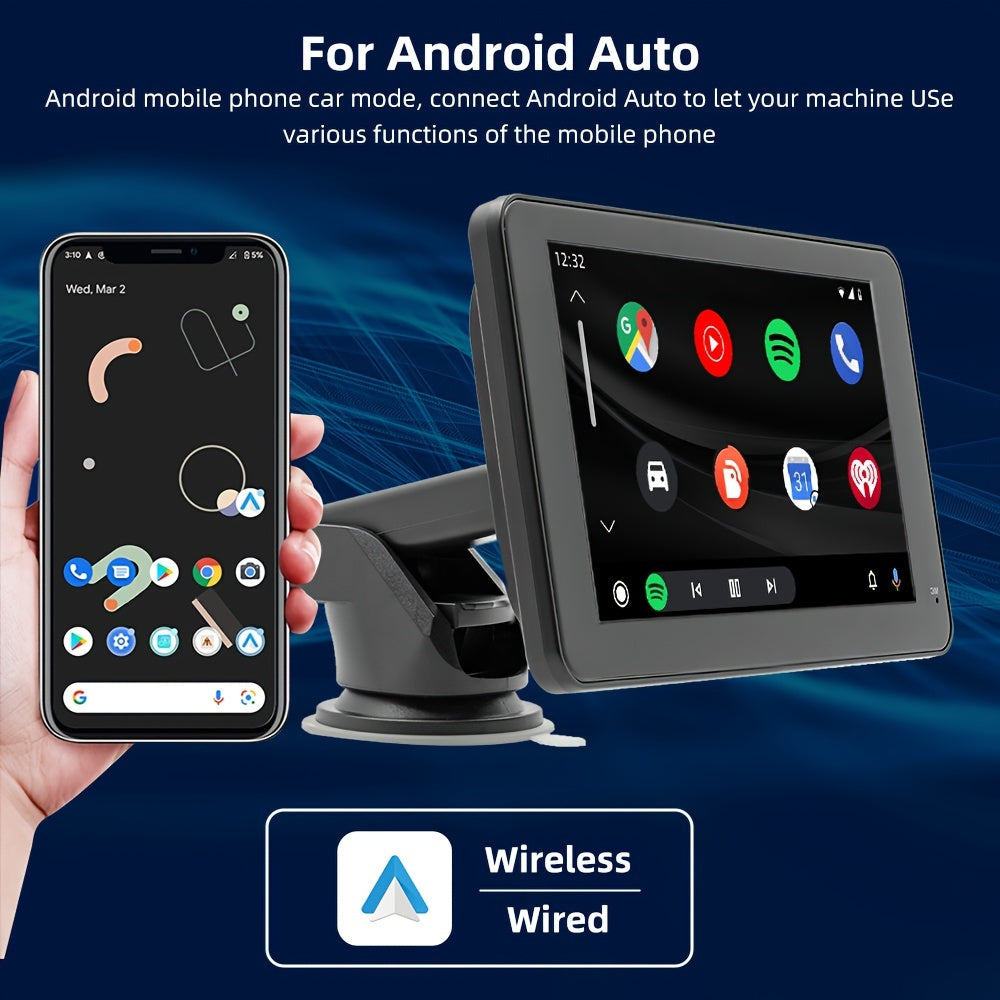 ستيريو سيارة، شاشة لمس لاسلكية محمولة 17.78 سم لمشغل الوسائط المتعددة الأوتوماتيكي الذي يعمل بنظام Android، شاشة ملاحة