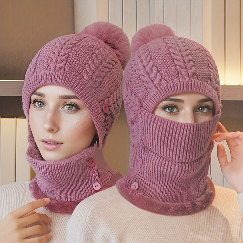قبعة شتوية محبوكة للجنسين مع غطاء للرقبة والوجه، تغطي الأذن وتحمي من الرياح، مناسبة لركوب الدراجات والتزلج، مصنوعة من النايلون، يمكن غسلها باليد، لون أسود.