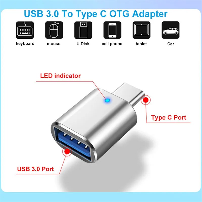 USB 3.0 إلى نوع C محول LED OTG إلى USB C USB-A إلى المصغّر USB نوع C موصل سالب لمحولات هواوي سامسونج شاومي POCO