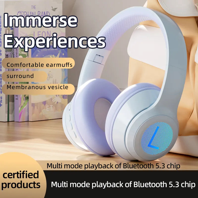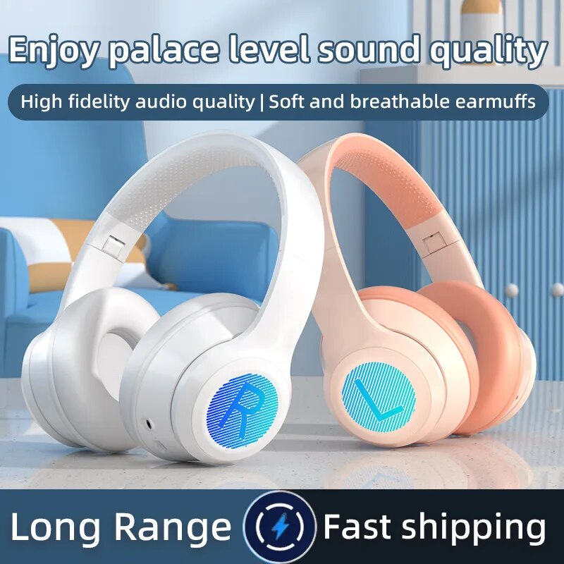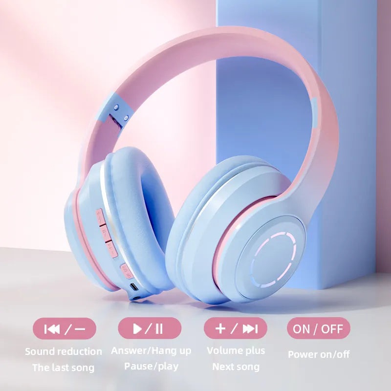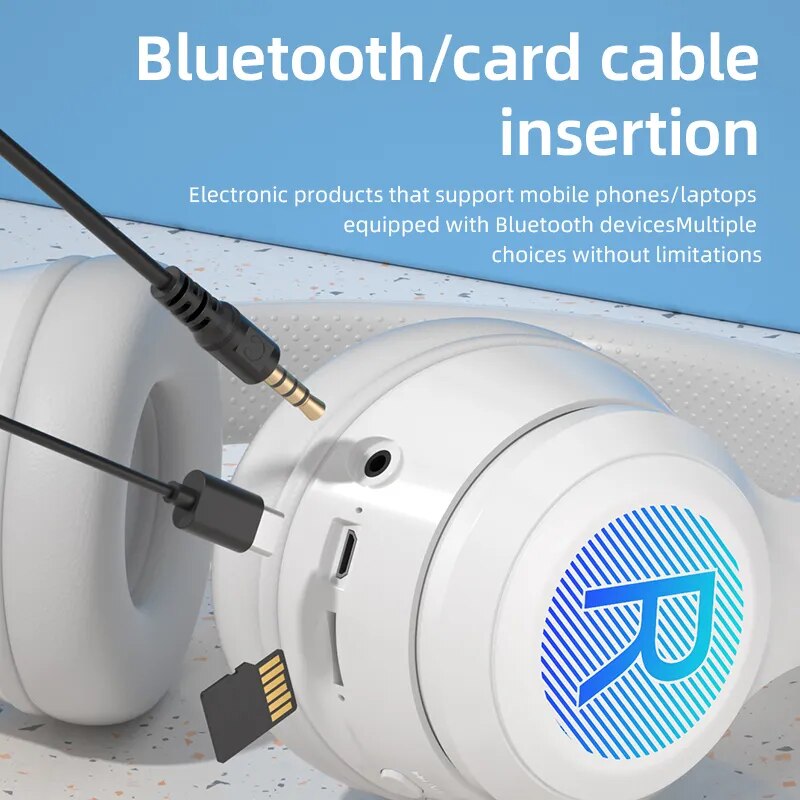 بي مارت سماعة رأس B39 مزودة بتقنية البلوتوث اللاسلكية ذات ضوء ملون قابلة للتوصيل ببطاقة لعبة الموسيقى