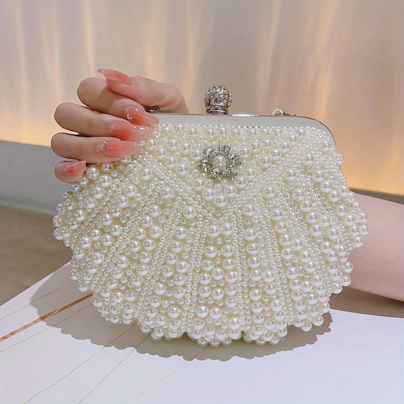 حقيبة سهرة مميزة، مشبك سلسلة معدنية، حقيبة حفلة بمقبض زهري للزفاف
