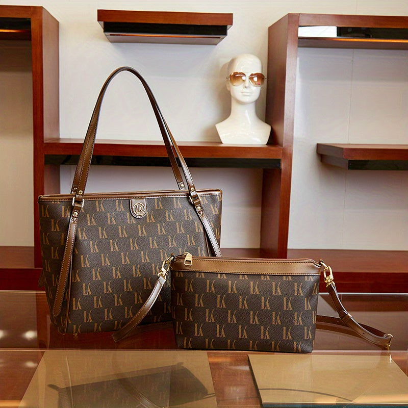 قطعتان / مجموعة حقيبة يد كلاسيكية بطبعة هندسية ، حقيبة كتف فاخرة ذات سعة كبيرة ، حقيبة يد كلاسيكية نسائية وحقيبة صغيرة