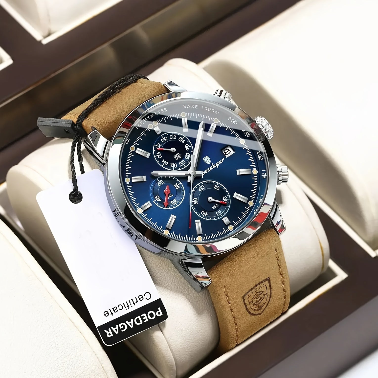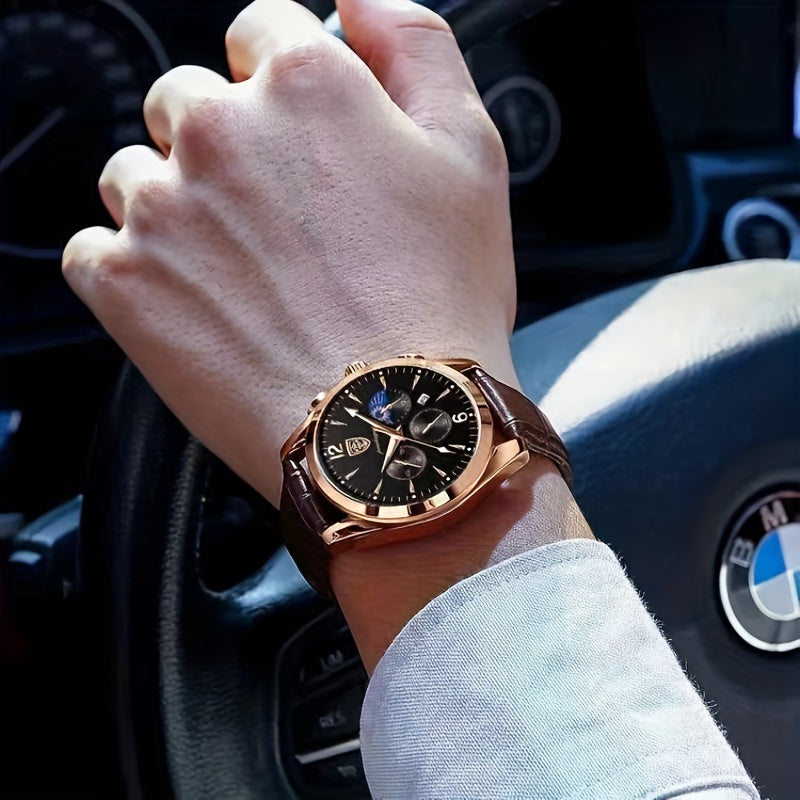 ساعة كوارتز أنيقة للرجال من بويداغار - مقاومة للماء، مضيئة مع ميزة التقويم، حزام جلد طبيعي