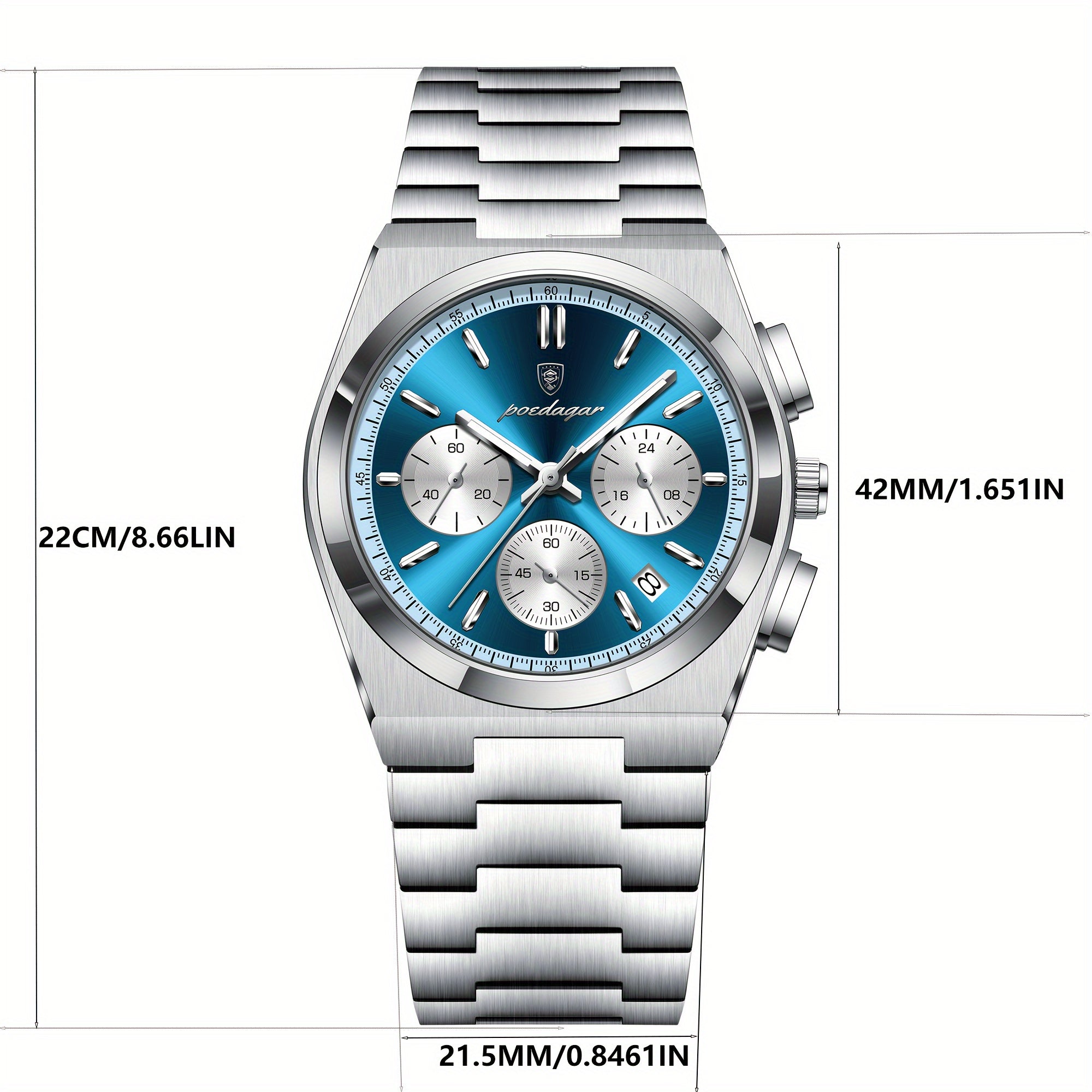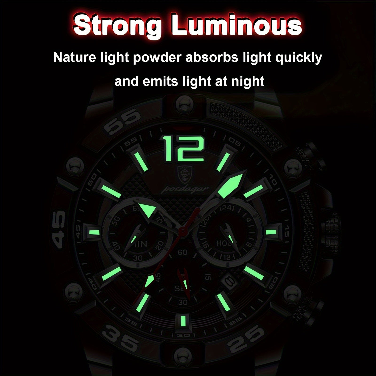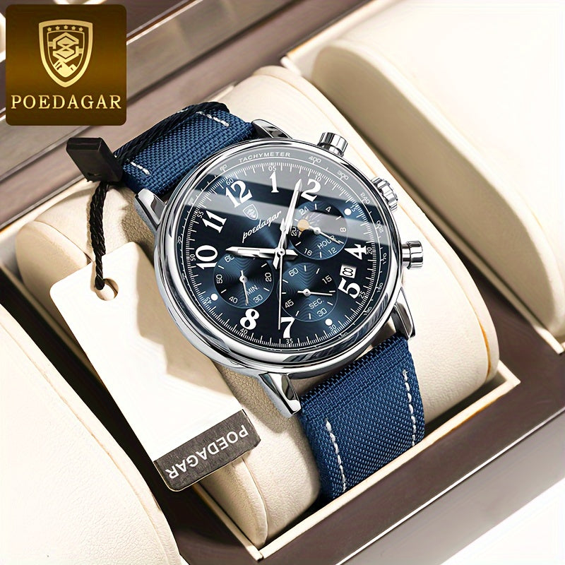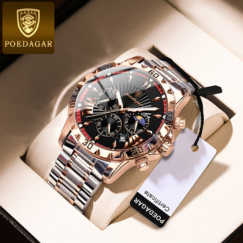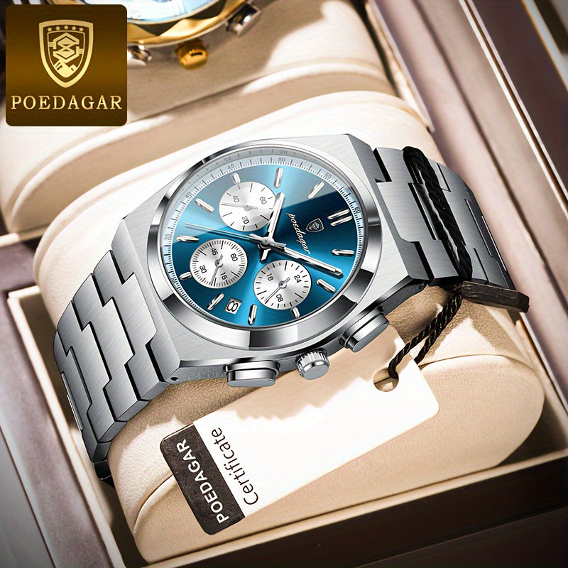 ساعة POEDAGAR كرونوغراف للرجال، ساعات كوارتز رياضية مضيئة مقاومة للماء من الفولاذ المقاوم للصدأ، اختيار مثالي للهدايا
