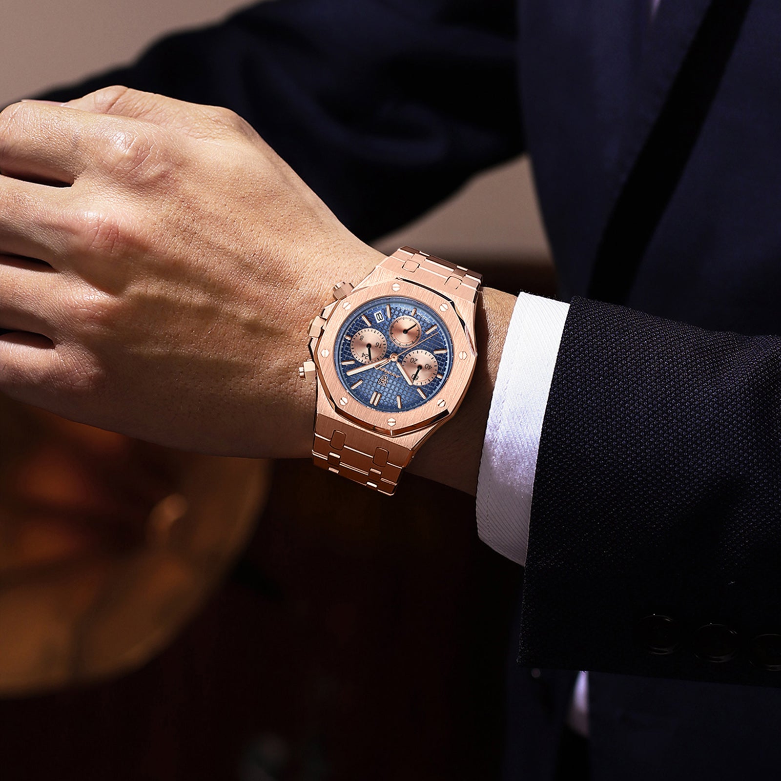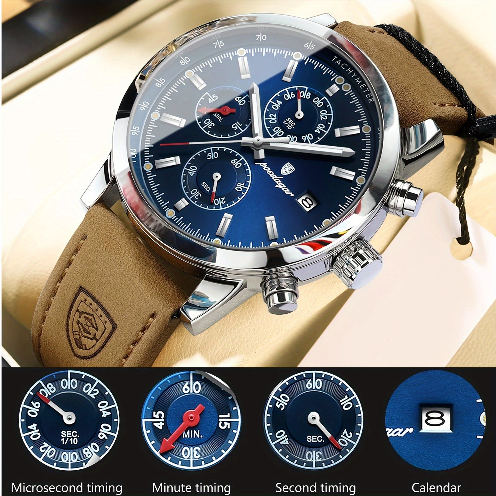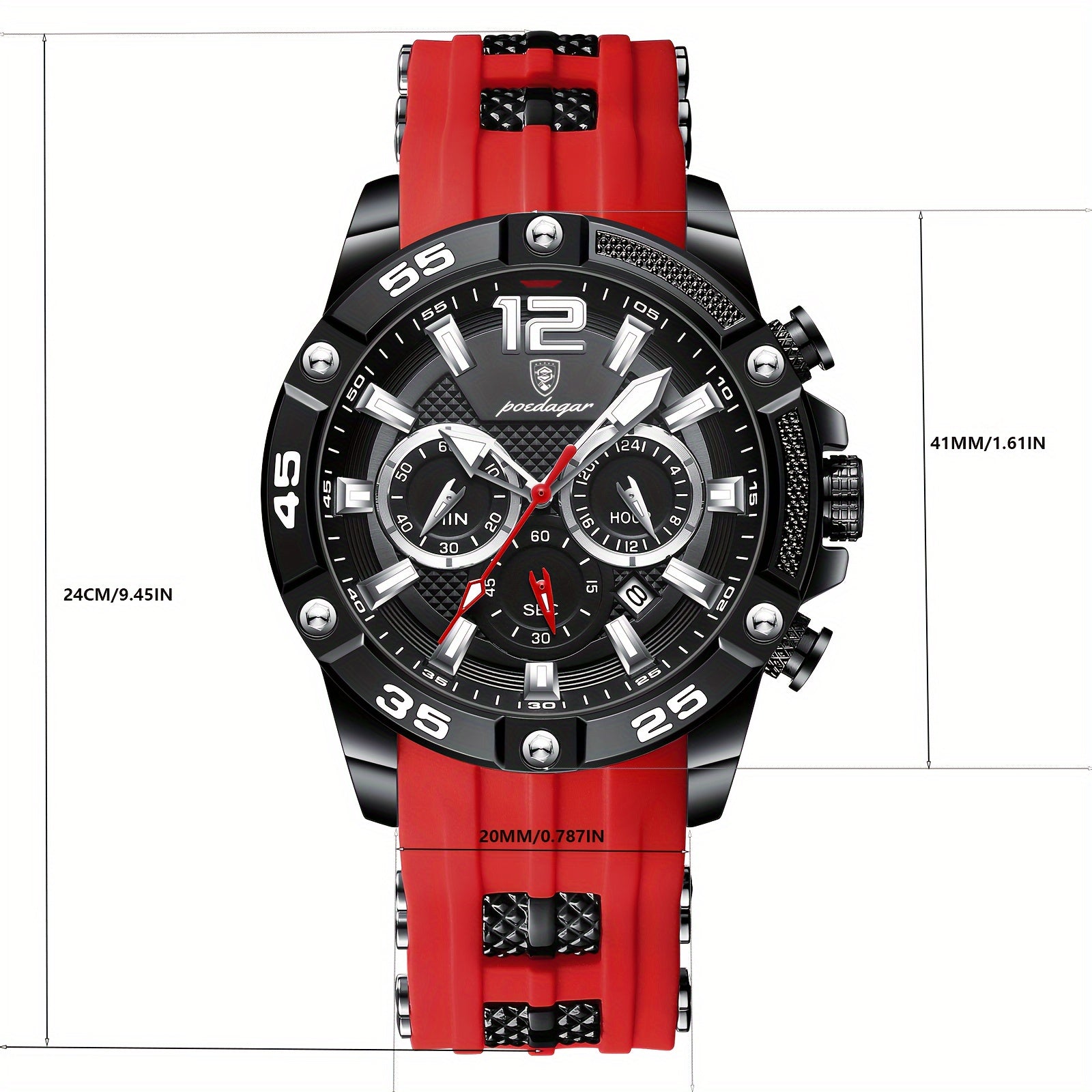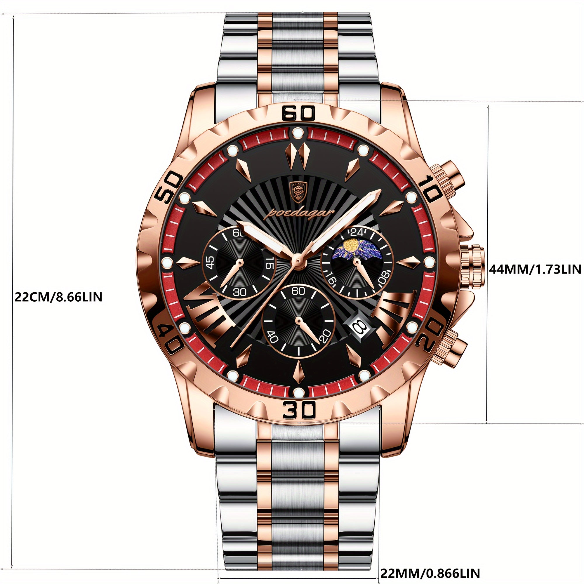 ساعة POEDAGAR كرونوغراف للرجال، ساعات كوارتز رياضية مضيئة مقاومة للماء من الفولاذ المقاوم للصدأ، اختيار مثالي للهدايا