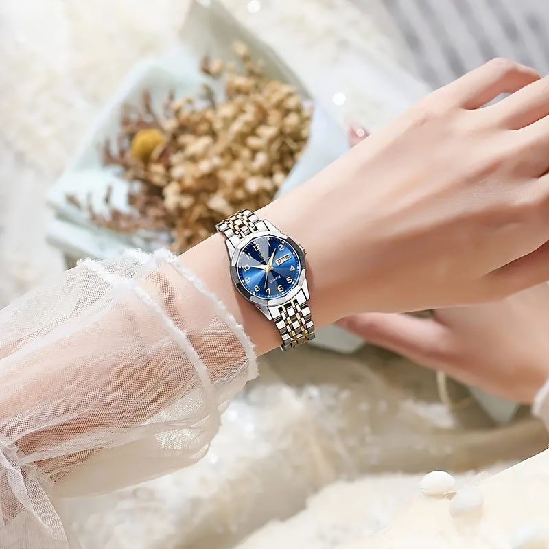 ساعة رجالية عصرية من الكوارتز، مقاومة للماء ومضيئة مع تقويم، مصنوعة من الفولاذ المقاوم للصدأ