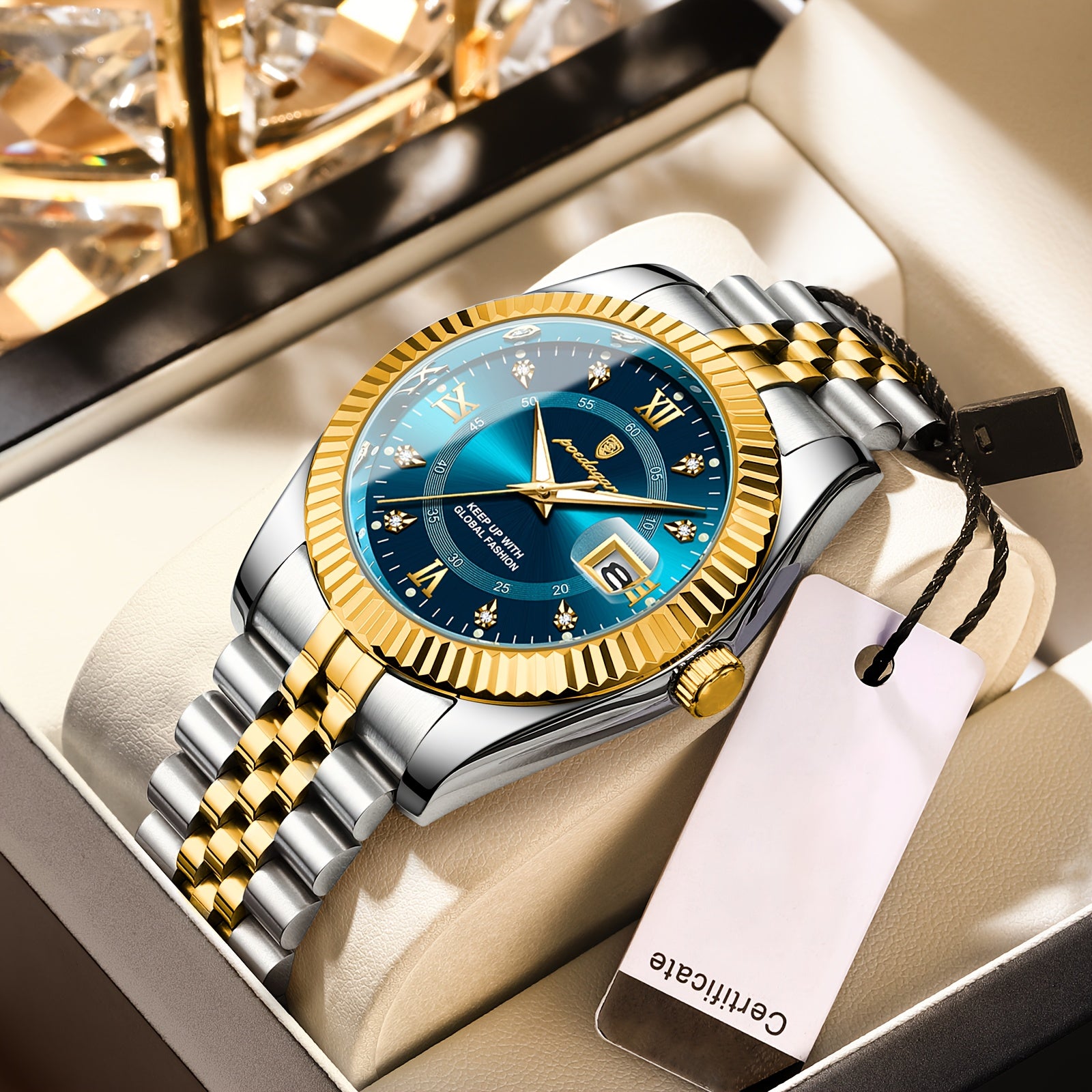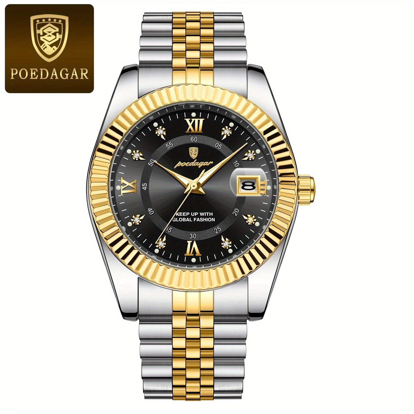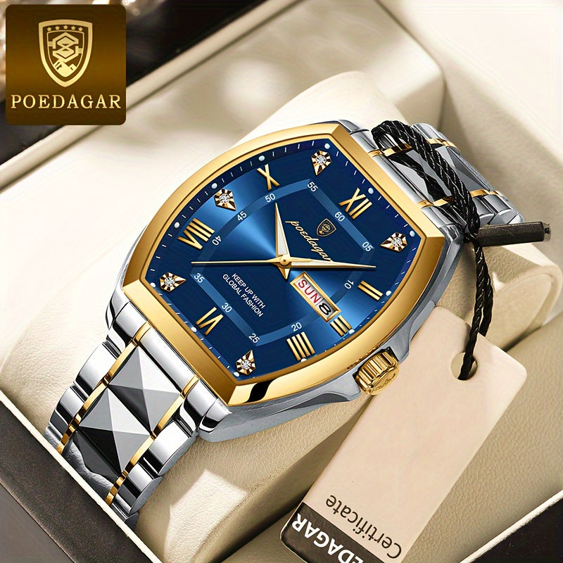 ساعة يد كوارتز رجالية من الفولاذ المقاوم للصدأ بتقويم متوهج مقاومة للماء من POEDAGAR، اختيار مثالي للهدايا