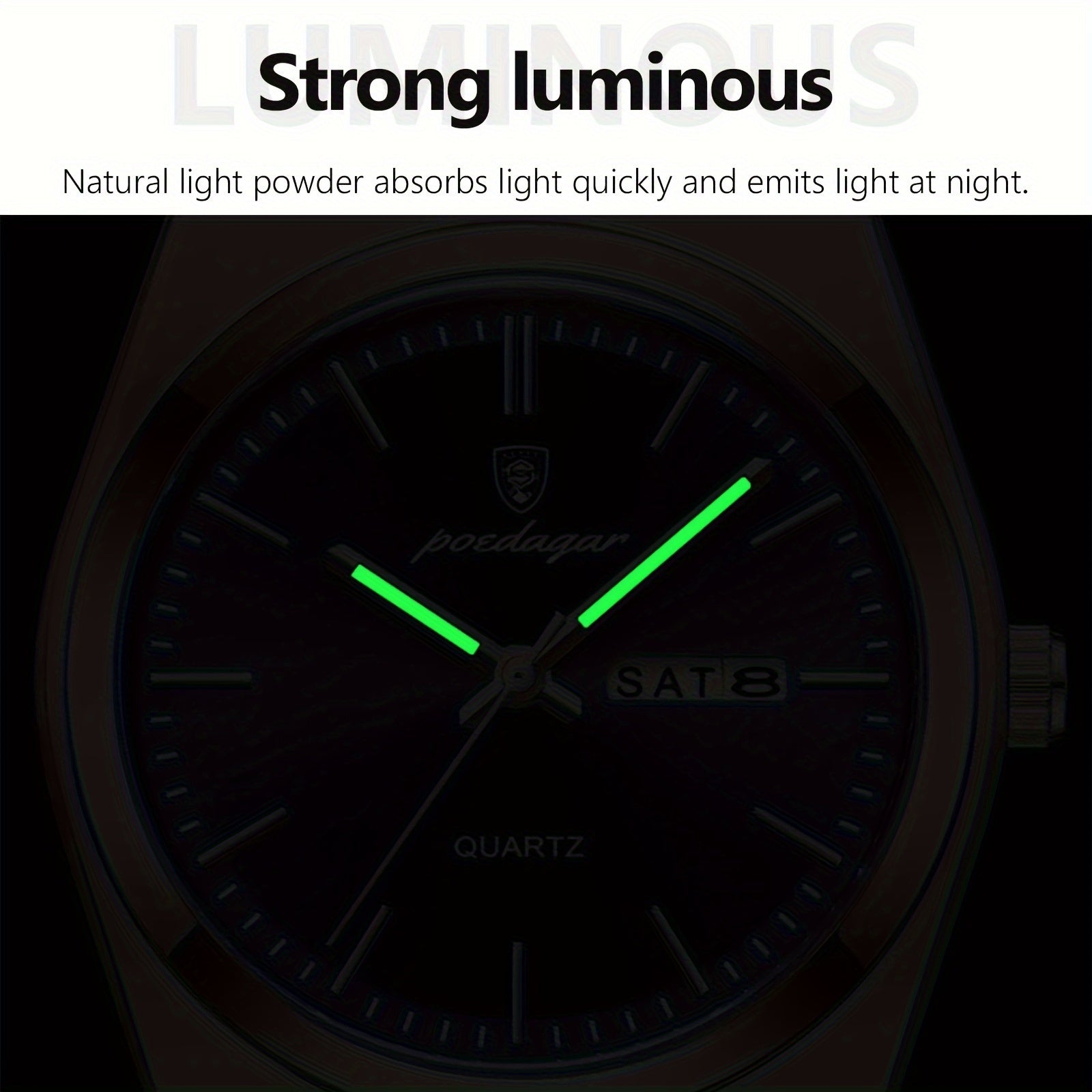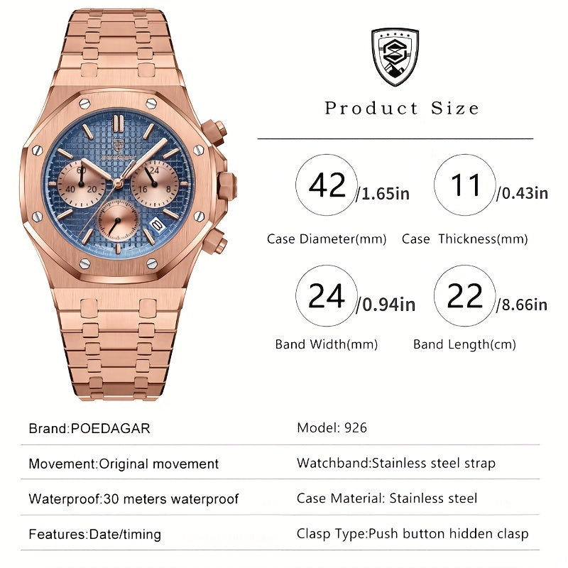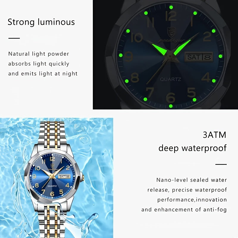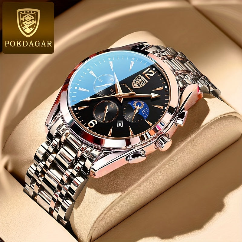 ساعة POEDAGAR كوارتز للرجال، مقاومة للماء بتقويم مضيء من الفولاذ المقاوم للصدأ للرجال، اختيار مثالي للهدايا