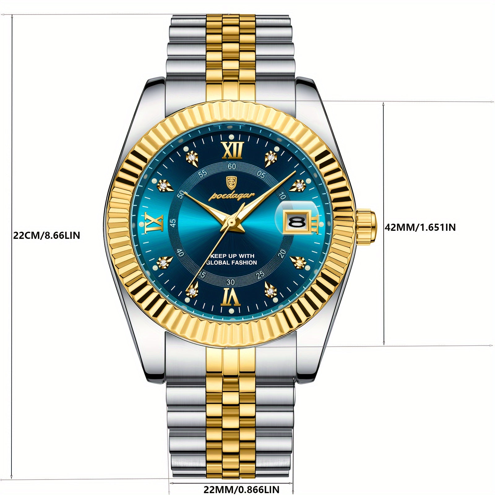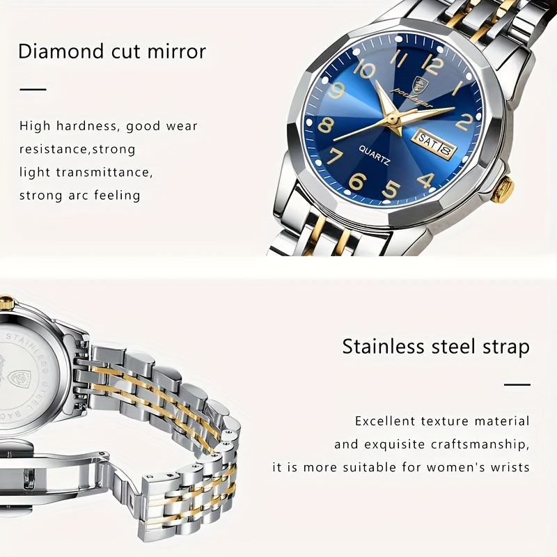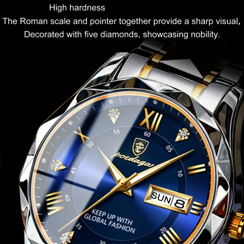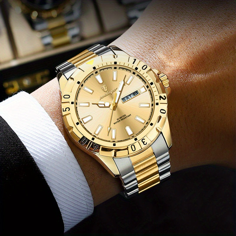 ساعة POEDAGAR كوارتز للرجال، مقاومة للماء بتقويم مضيء من الفولاذ المقاوم للصدأ للرجال، اختيار مثالي للهدايا