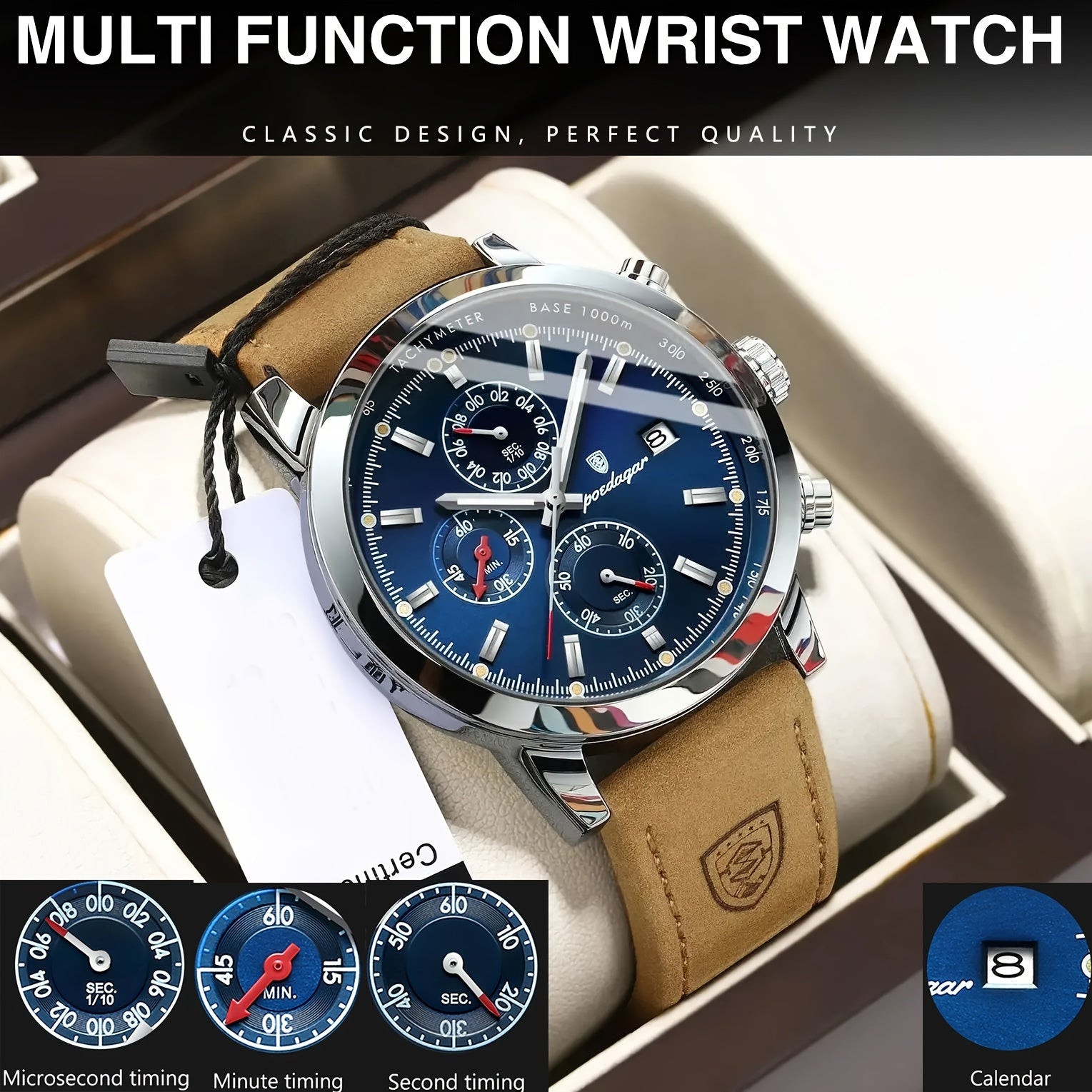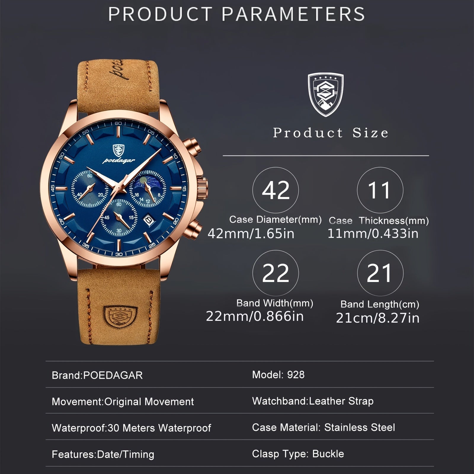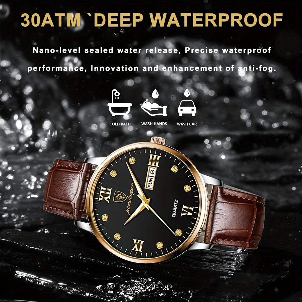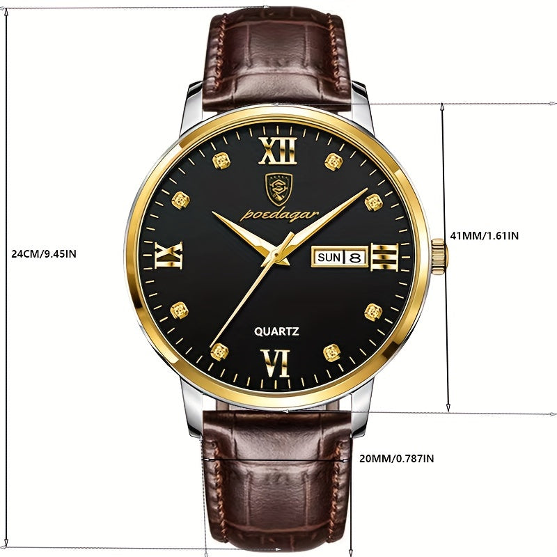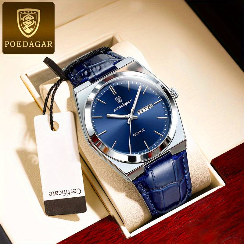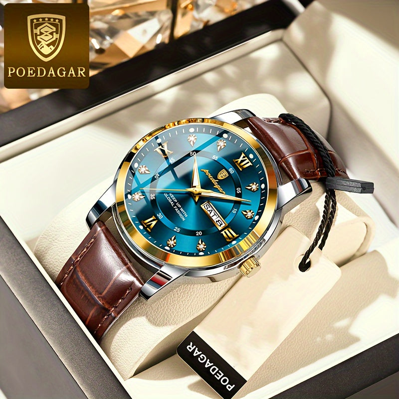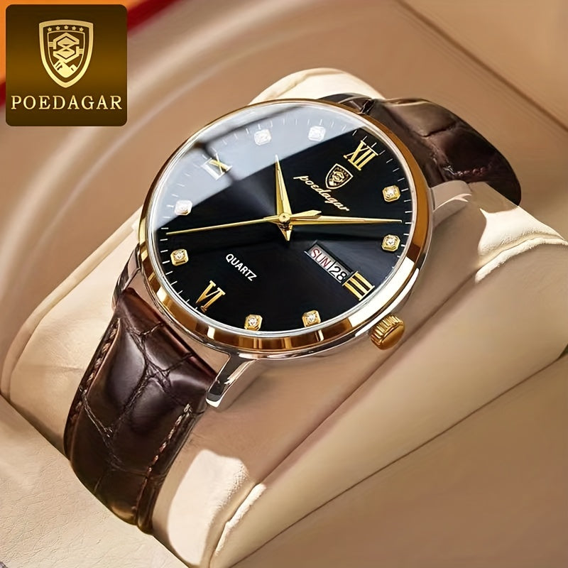 POEDAGAR ساعة مقاومة للماء للرجال، ساعة كوارتز أنيقة للرجال، اختيار مثالي للهدايا
