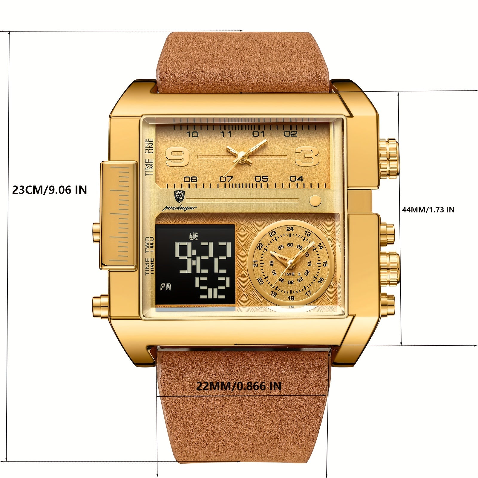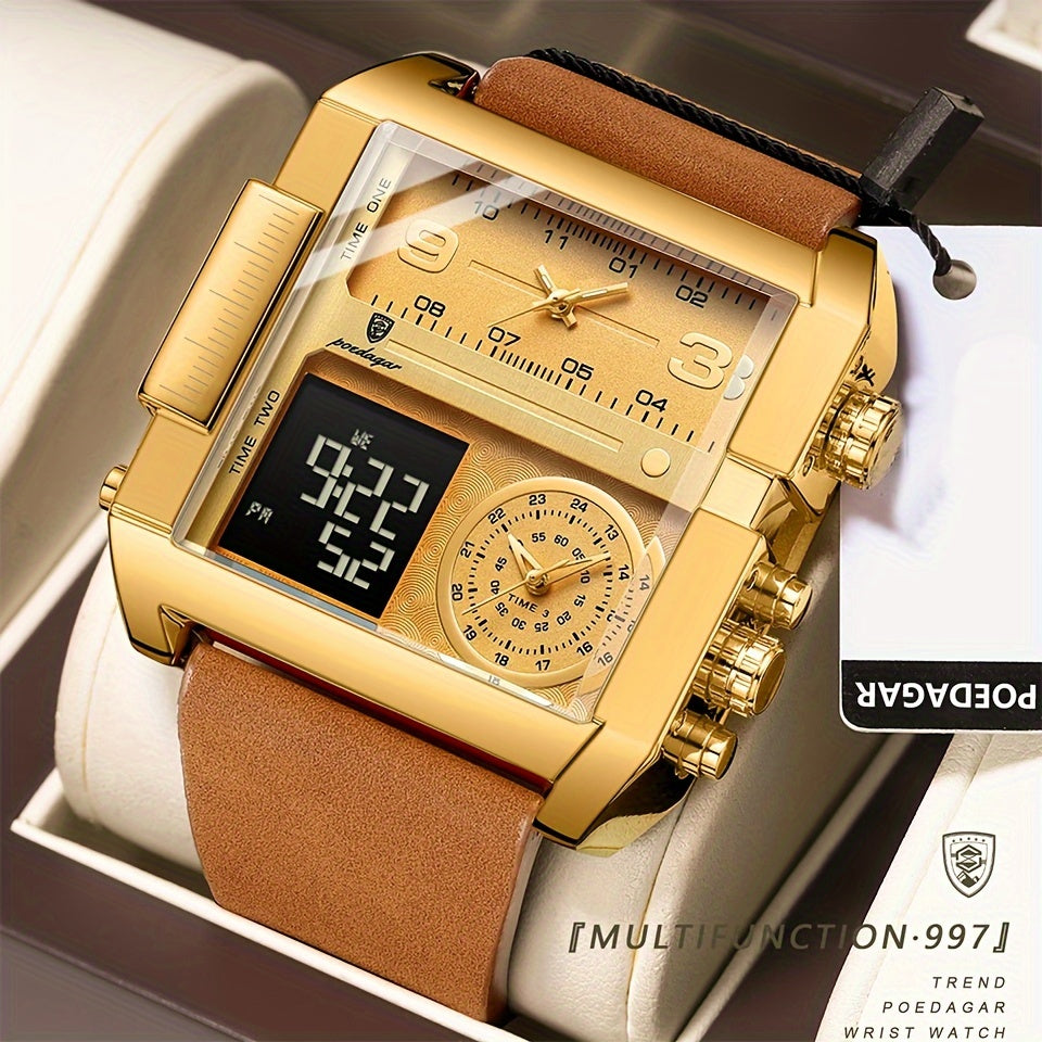 ساعة بويداجار سكوير المضادة للماء ذات تقويمين مزدوجين ومضيئة بالكوارتز، ساعة معصم رجالية عصرية للطلاب ورجال الأعمال