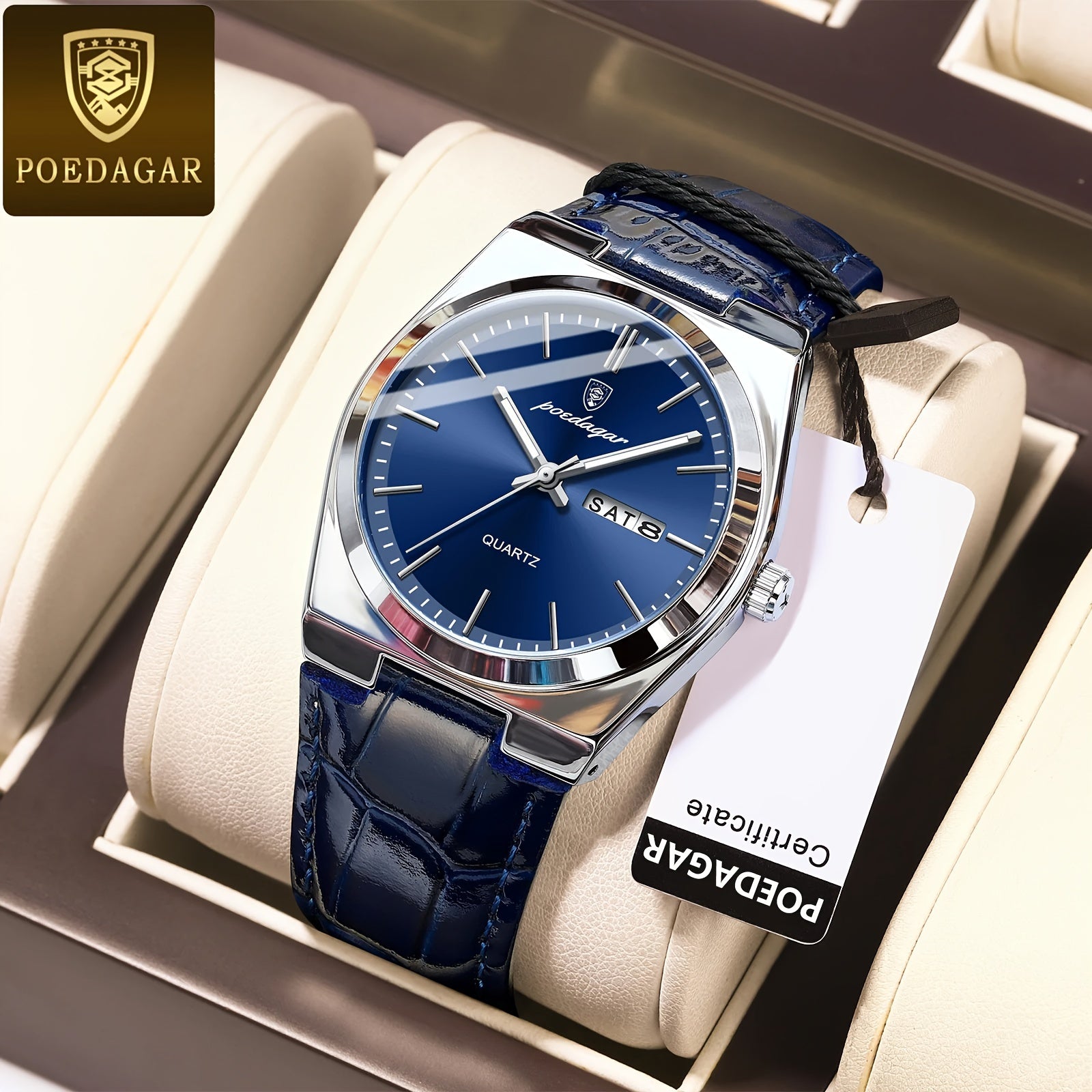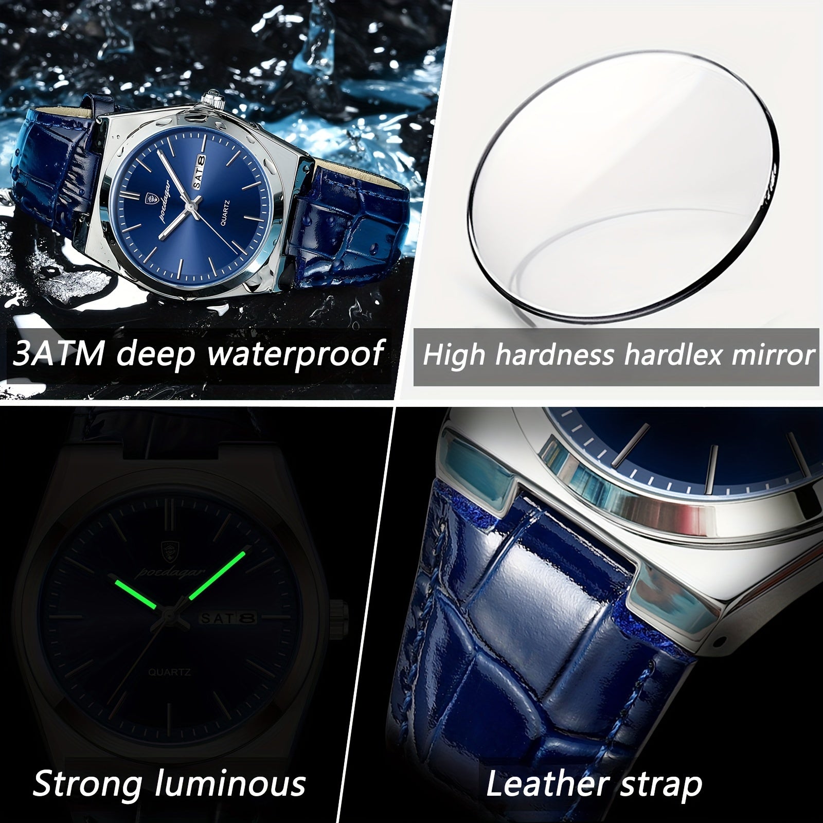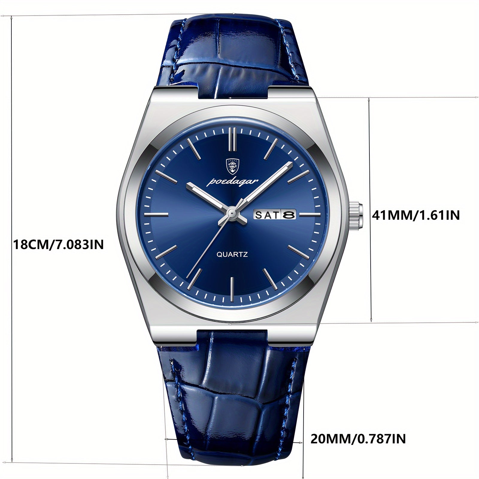 ساعة Poedagar للرجال مقاومة للماء بتقويم مضيء، ساعة معصم عصرية للطلاب، اختيار مثالي للهدايا