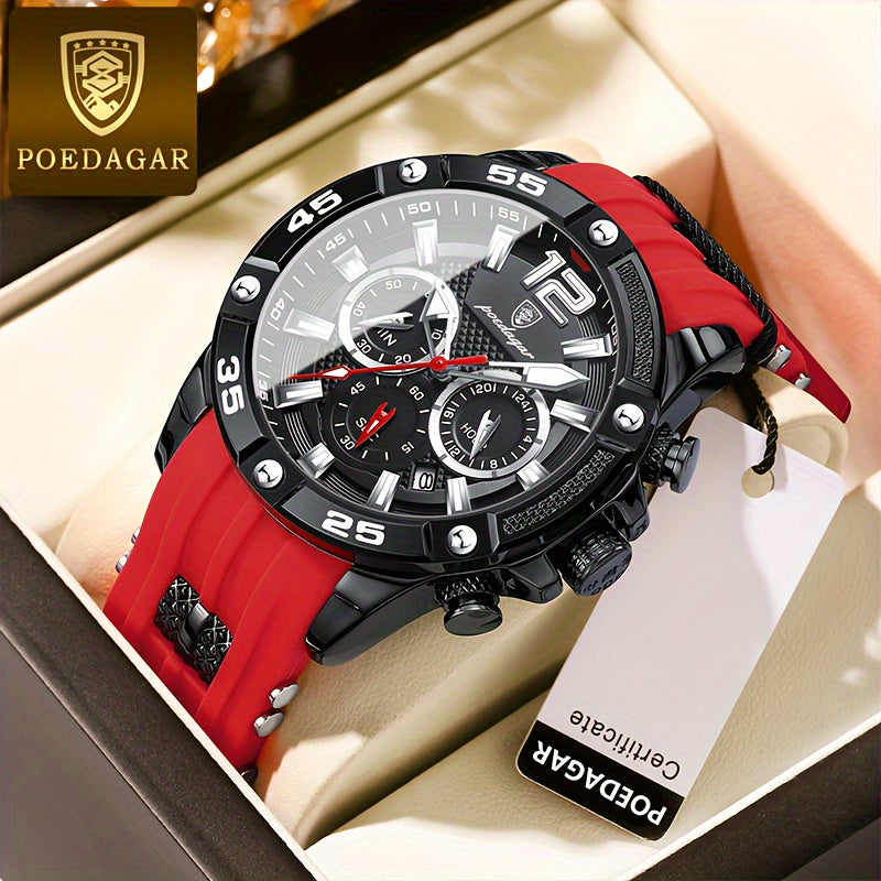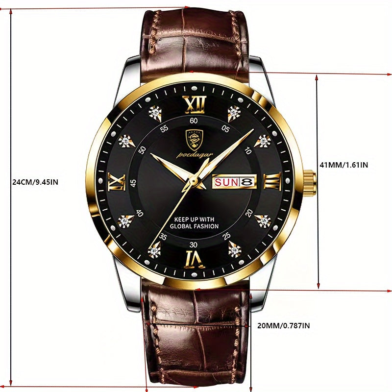 POEDAGAR ساعة كوارتز مضيئة في الظلام ومقاومة للماء وبتقويم السنة للرجال، اختيار مثالي للهدايا