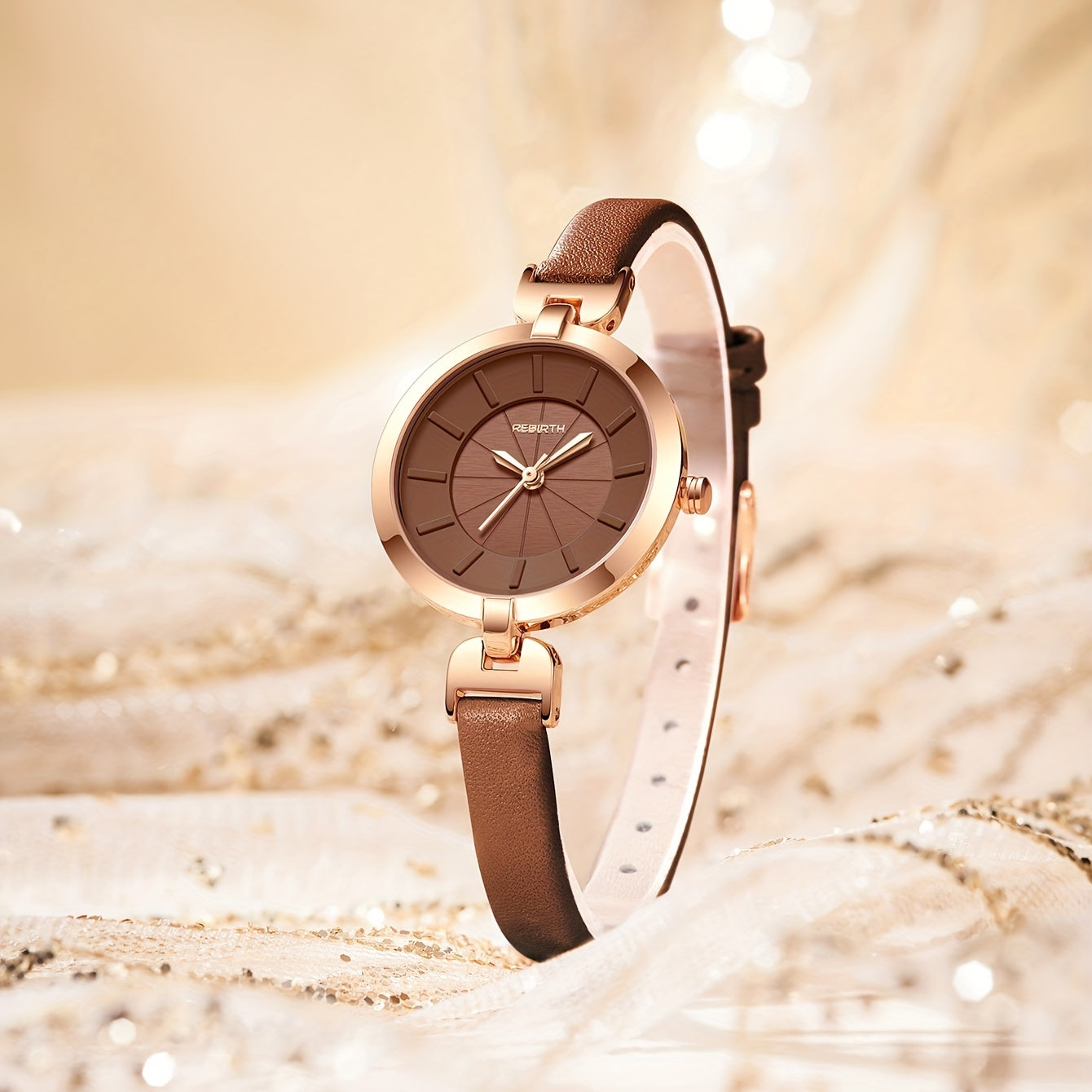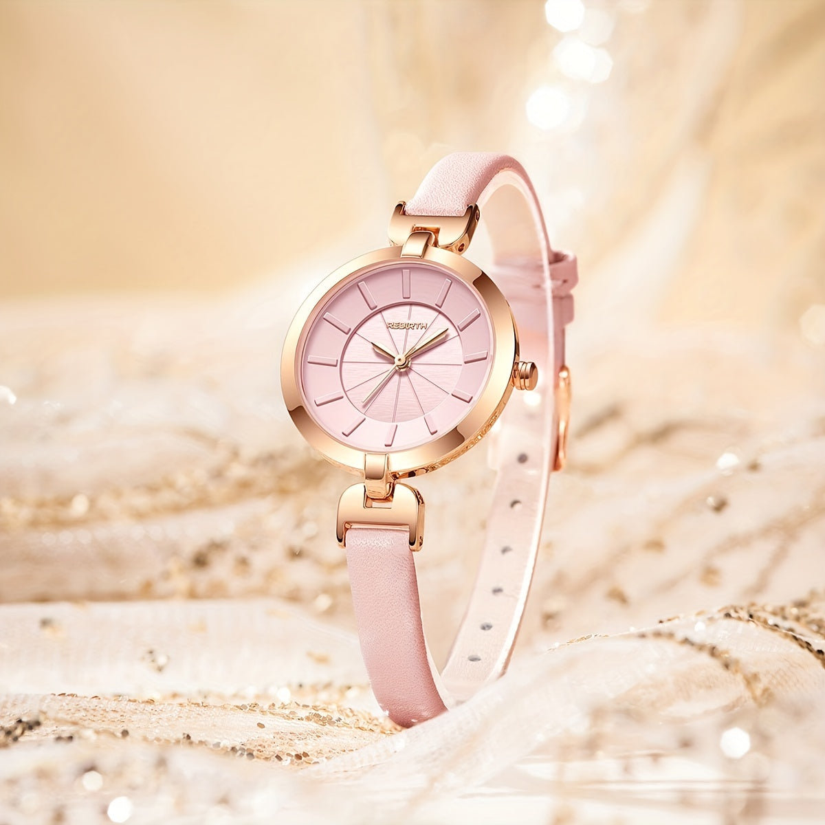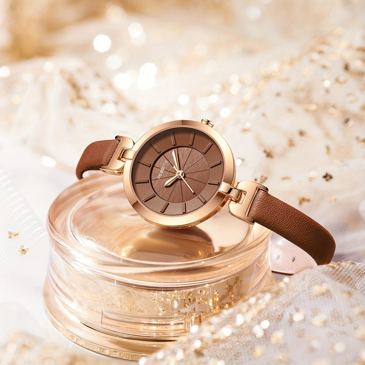 ساعة يد نسائية أنيقة مقاومة للماء من الجلد الصناعي مع مؤشر دائري غير رسمي من الكوارتز