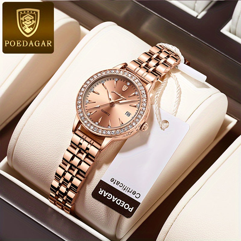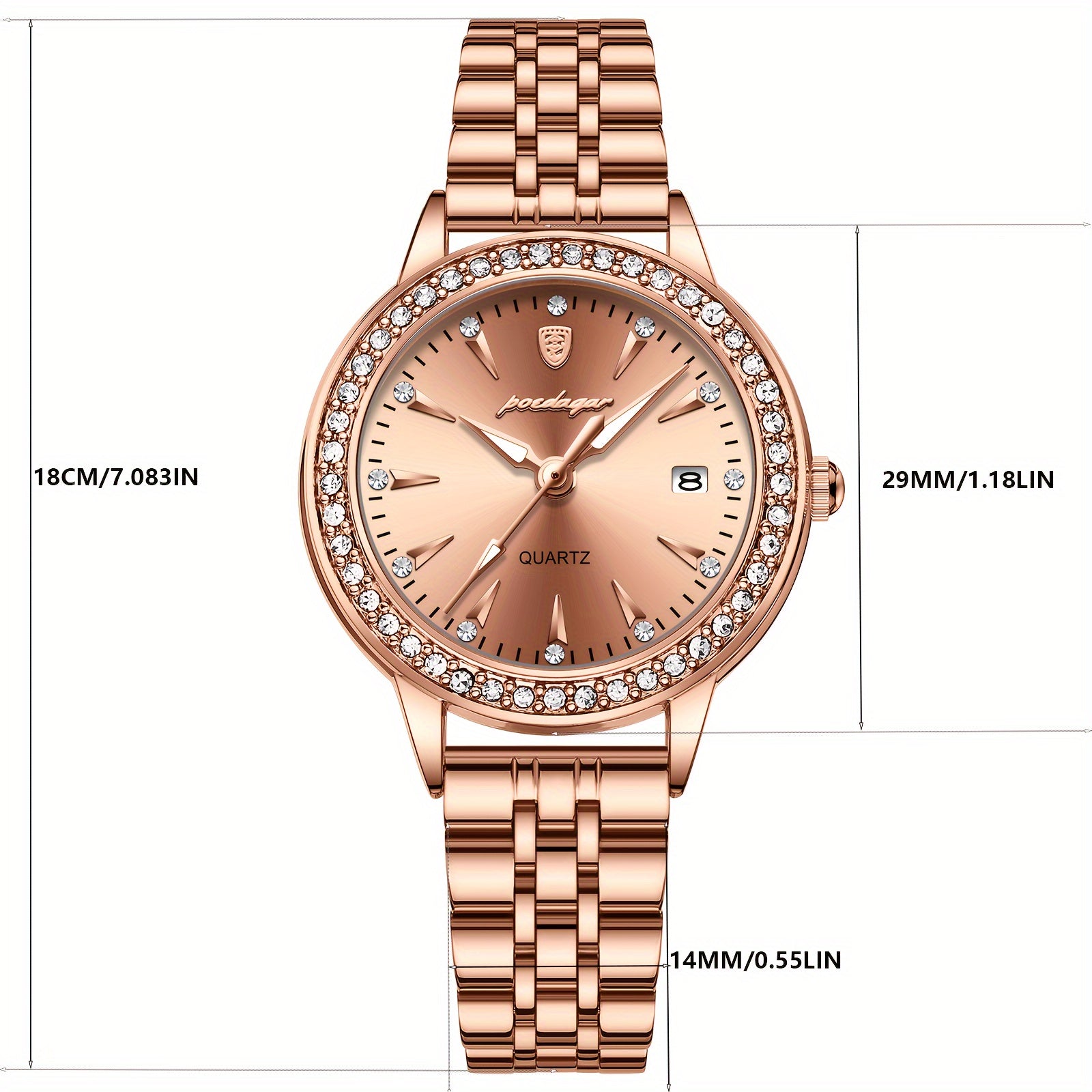 ساعة نسائية فاخرة مرصعة بالراين الكوارتز مقاومة للماء مضيئة تاريخ المينا التناظري الفولاذي الفاخر