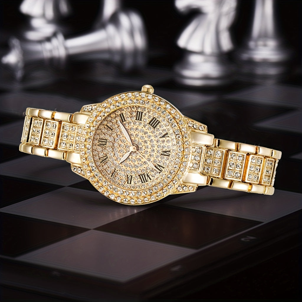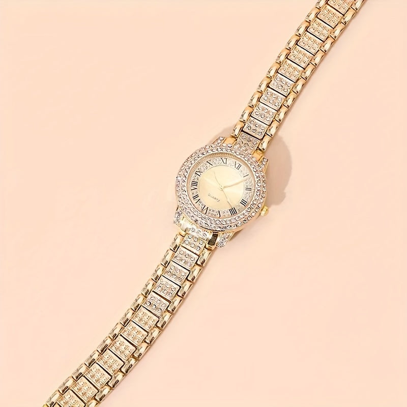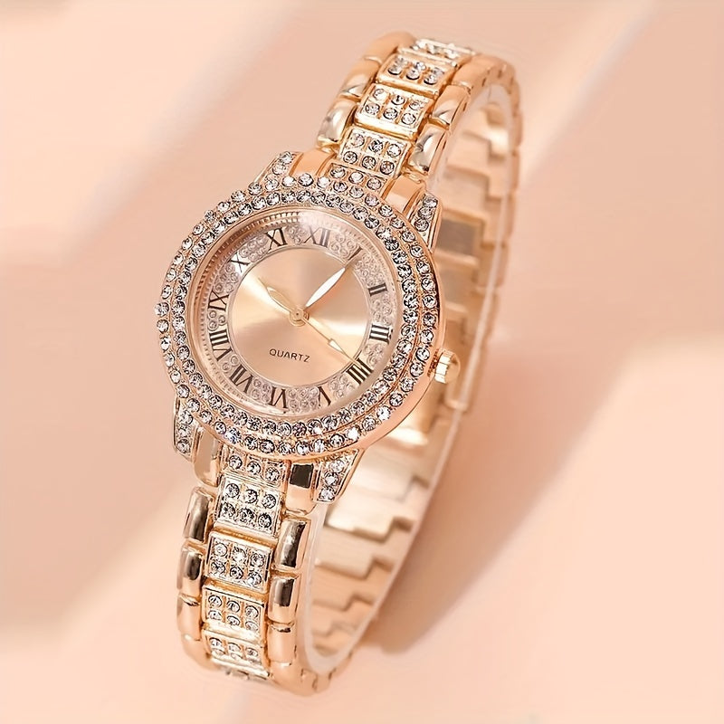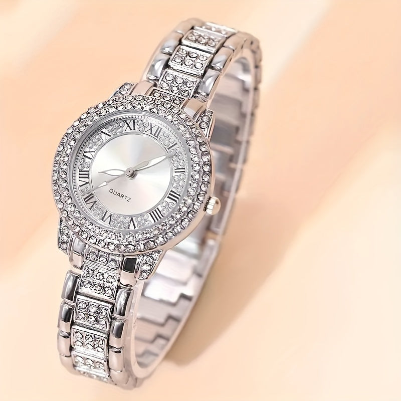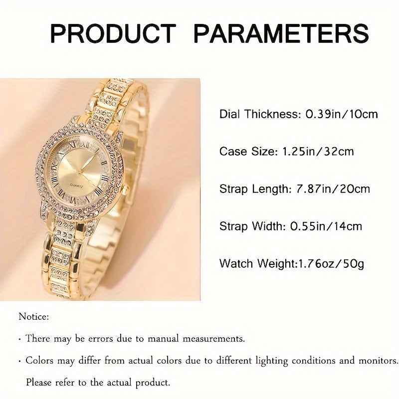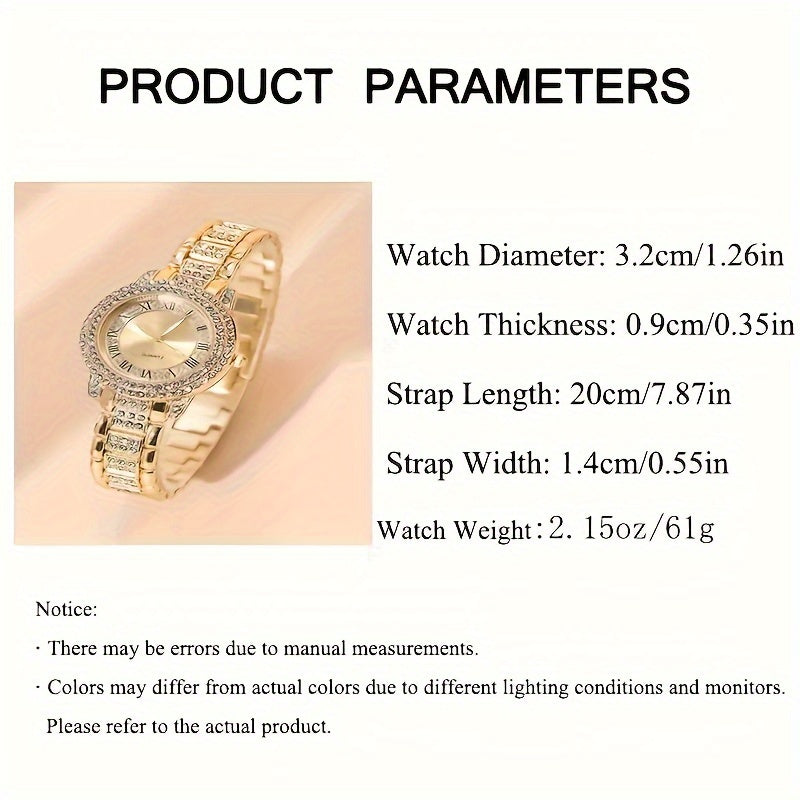 2 قطع من ساعات الكوارتز مع سوار من السبائك ومؤشر من السبائك وسوار من أحجار الراين للمرأة هدايا العيد