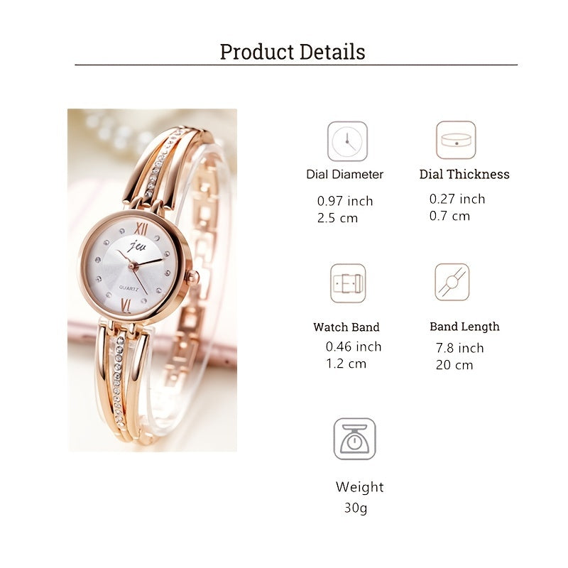 قطعتان من ساعة نسائية كوارتز بأحجار الراين اللامعة، ساعة معصم من جلد البولي يوريثان وسوار، هدية لأمها