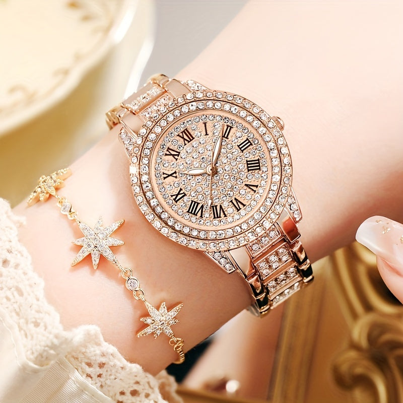 حجر الراين ديكور الكوارتز ووتش عارضة مرصعة بالنجوم الطلب النظير اللباس ووتش ، هدية لعيد الأم عيد الحب