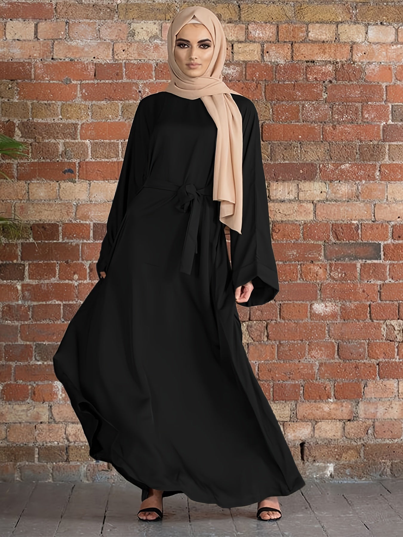 فساتين عبايات بأسلوب رمضاني متماسكة مع حزام على الخصر، بأكمام طويلة أنيقة وطول ماكسي، ملابس نسائية