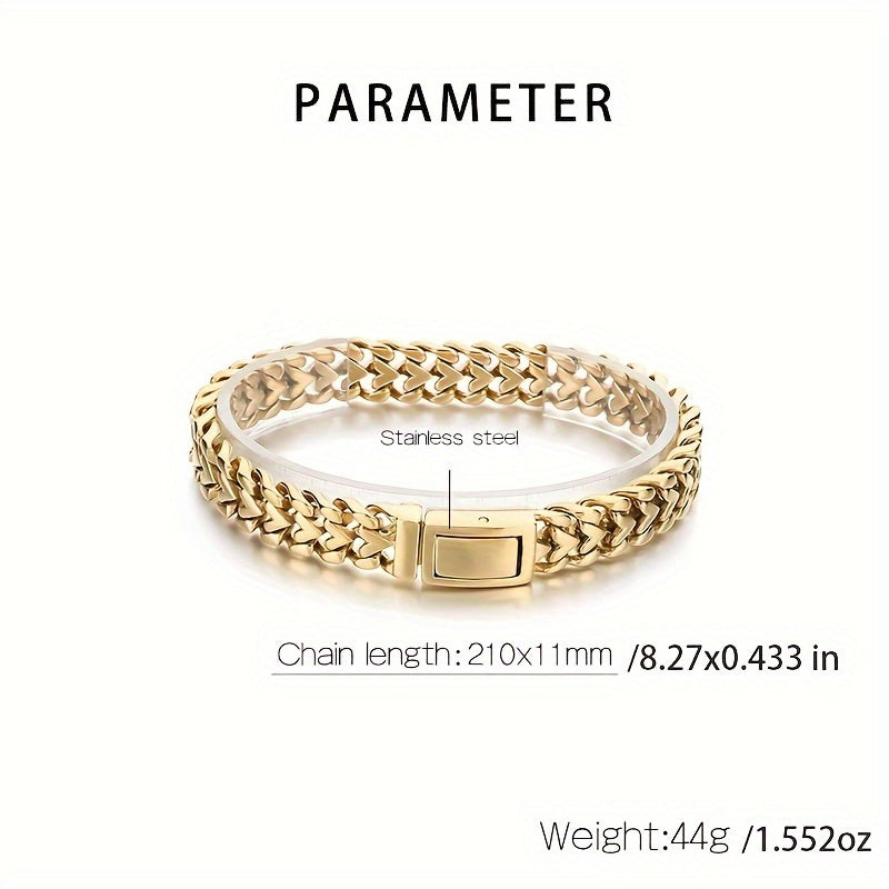 سوار رجالي فاخر مستوحى من الطراز القديم مع تصميم قلب عصري - مطلي بالذهب عيار 18 قيراط، من الفولاذ المقاوم للصدأ، مثالي للملابس الكاجوال