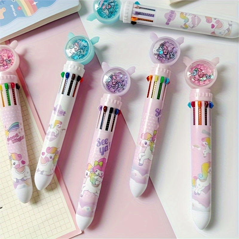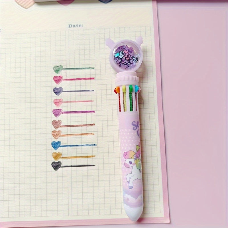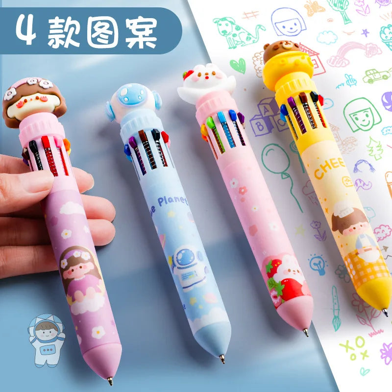 10 لون قلم حبر جاف لطيف الكرتون طالب المدرسة الابتدائية القلم الصحافة نوع اللون متعدد الوظائف هلام القلم قلم بسن بلية