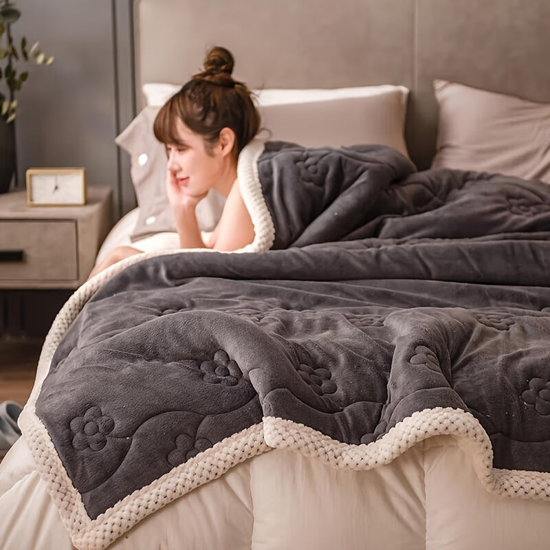 بطانية بوليستر دافئة سميكة معاصرة - محبوكة مريحة لجميع المواسم للسرير، الأريكة، السكن الجامعي - يمكن غسلها في الغسالة، بدون تزيين، محسنة لفصل الشتاء - قطعة واحدة