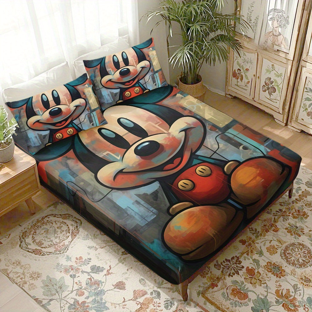 طقم أغطية وسادات وملاءة سرير ديزني ميكي من 3 قطع - يشمل غطاء وسادة مطابقين، ملاءة سرير * 1 - يناسب بسهولة الغرفة الرئيسية والغرفة الثانية، مناسب لجميع الفصول، ناعم ومسامي، عنصر ضروري للغرف