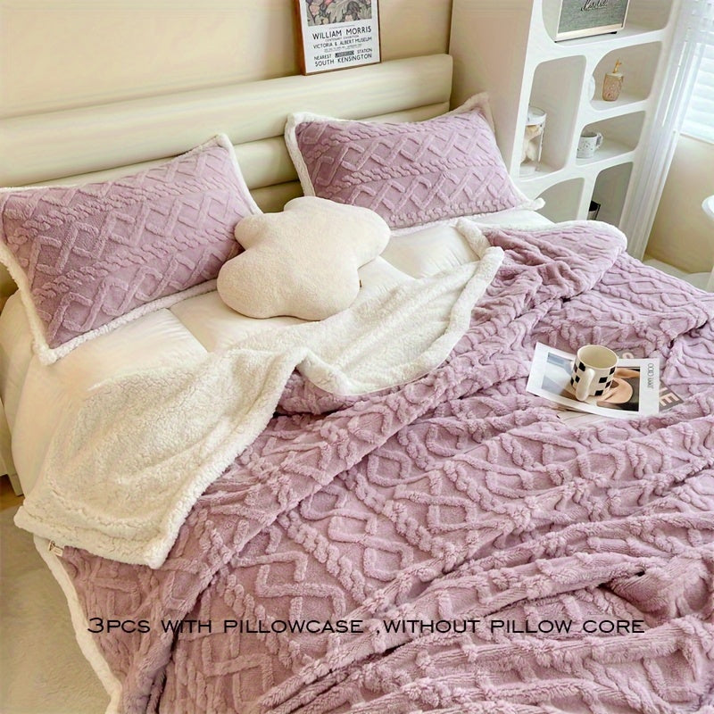 طقم بطانيات شيربا فليس ناعمة من 3 قطع - بطانيات فلوش مزدوجة الوجه فائقة الدفء للأريكة، السرير، الأريكة، والسفر - قابلة للغسل في الغسالة، تصميم بنفسجي منعش من ITS ADA