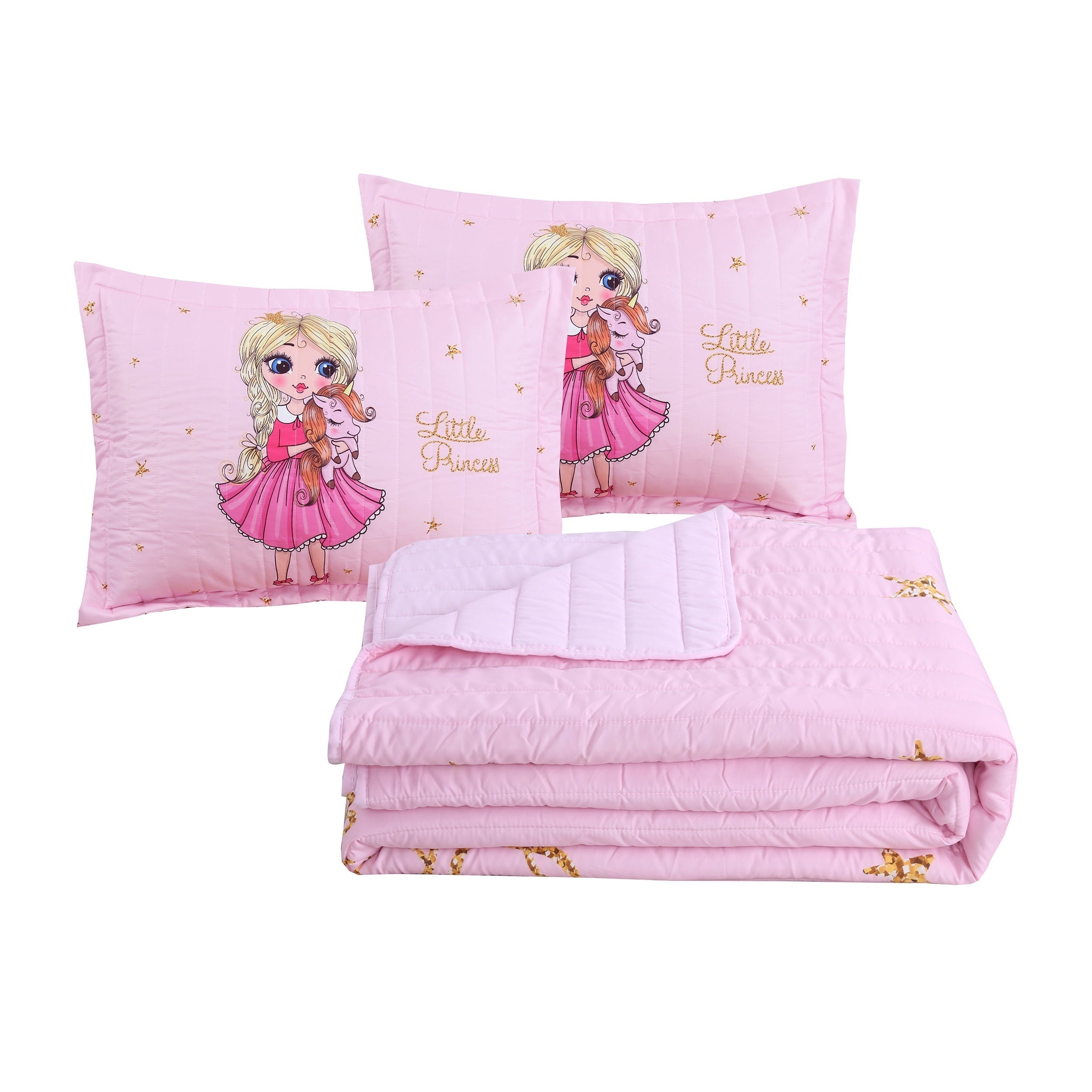 طقم لحاف فتاة جميلة مطبوع ثلاثي الأبعاد من 3 قطع - ناعم ومتين لجميع المواسم - مثالي لغرف نوم الأطفال! عيد الميلاد، عيد الهالوين، كرنفال هدايا عيد الشكر