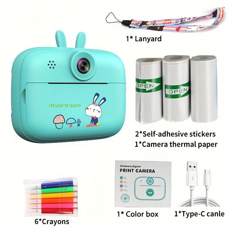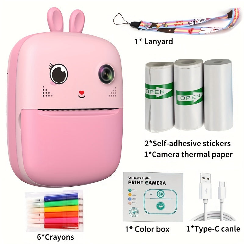 كاميرا فورية للطباعة، مسجل فيديو 1080 بكسل هدية للبنات والأولاد، كاميرا سيلفي مع كاميرا أمامية وخلفية، كاميرا وقوف التصوير مع 2 لفات من الملصقات اللاصقة