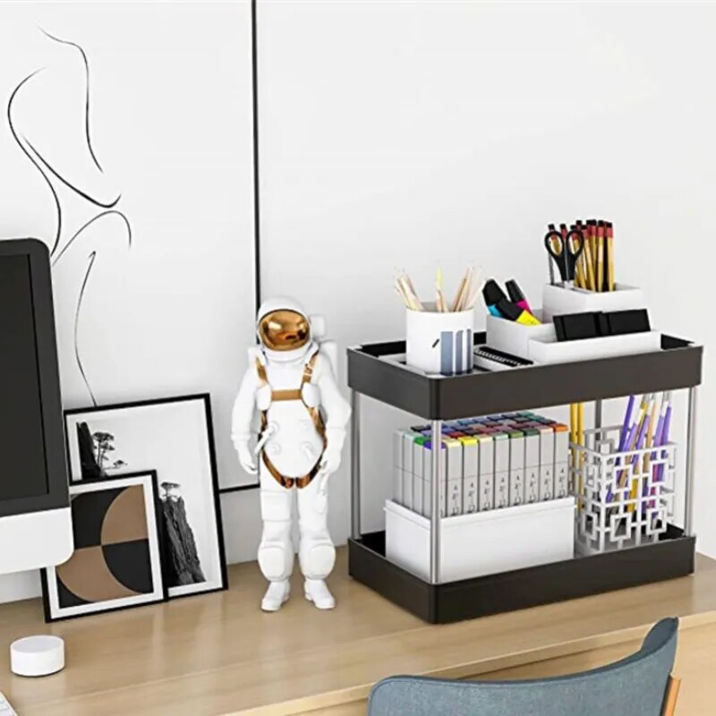 منظم تخزين تحت الحوض بطبقتين، رف متعدد الأغراض، منظم مطبخ للحمام، حامل متعدد الأغراض للمطبخ