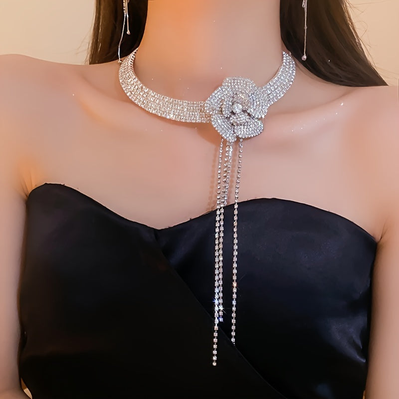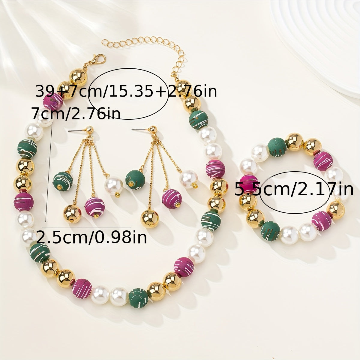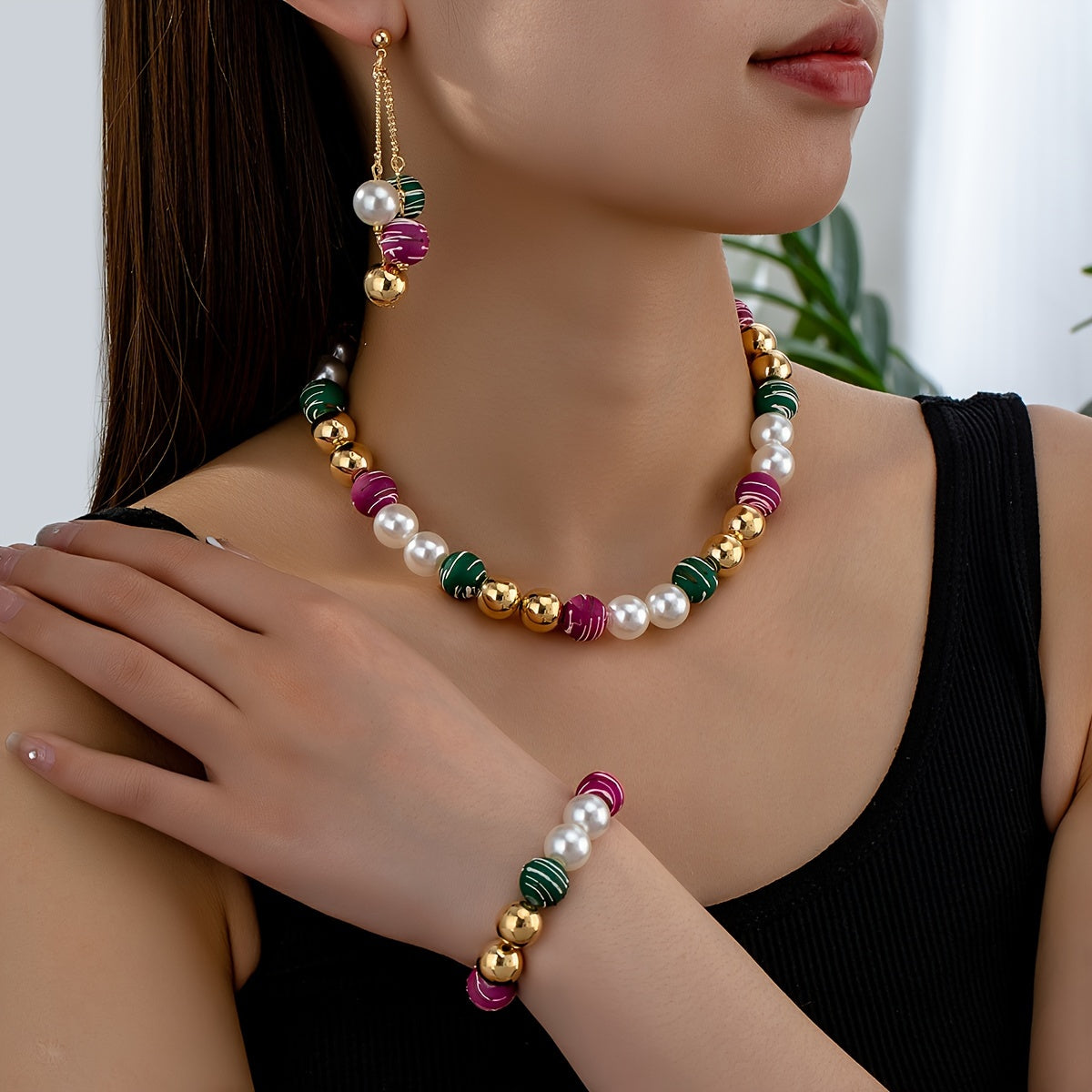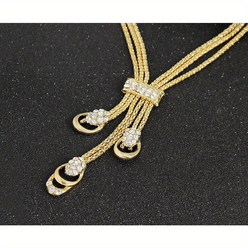 مجموعة مجوهرات أنيقة تتكون من زوج من الأقراط وقلادة بتصميم متعدد الطبقات مصنوعة من اللؤلؤ الاصطناعي لتزيين الحفلات المسائية