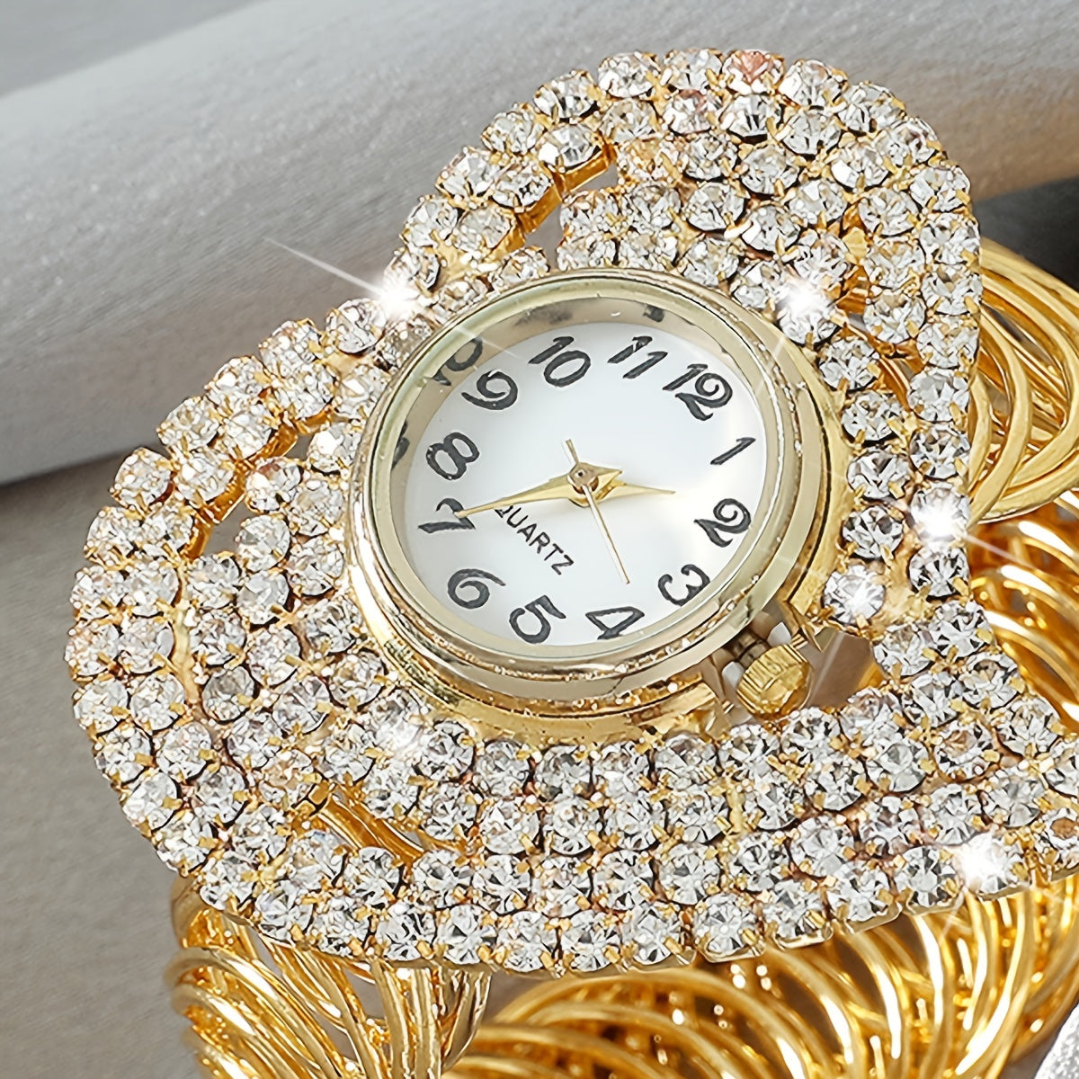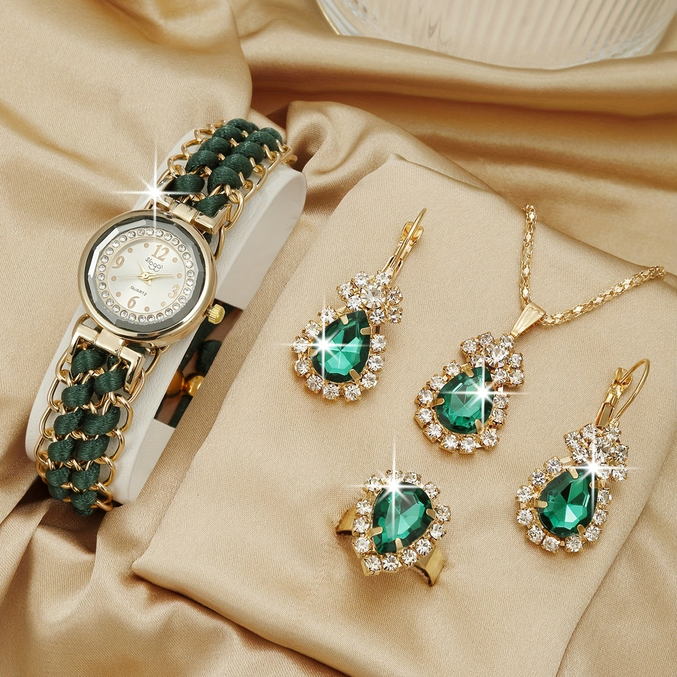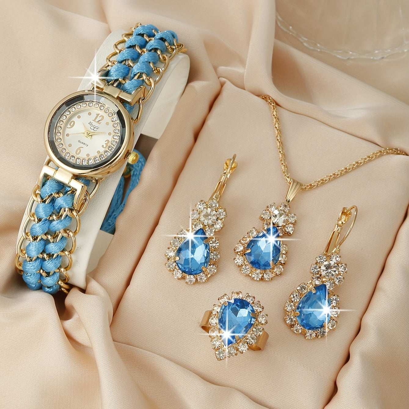 ساعة نسائية باروك موضة كوارتز سوار ساعة متألقة حجر الراين التناظرية ساعة معصم و 4 قطع مجموعة مجوهرات ، هدية لأميها