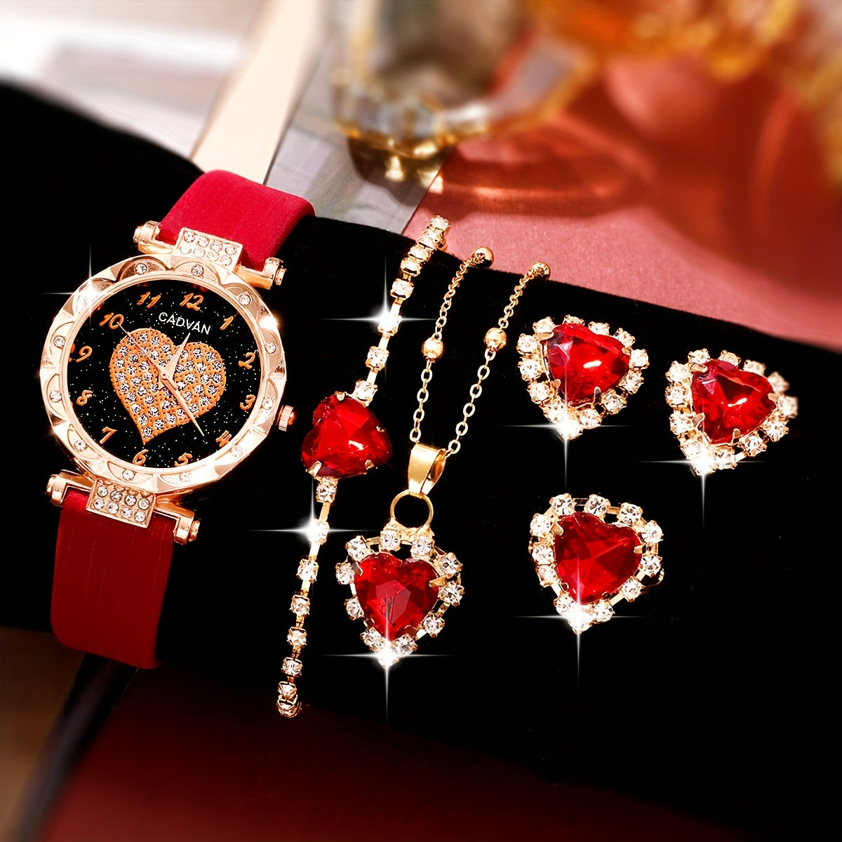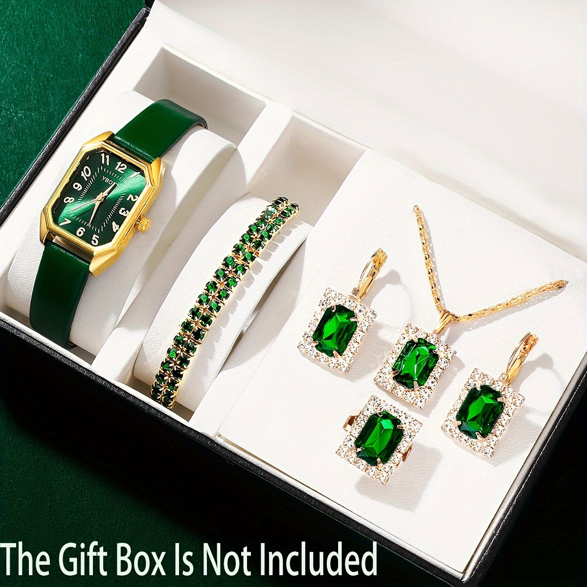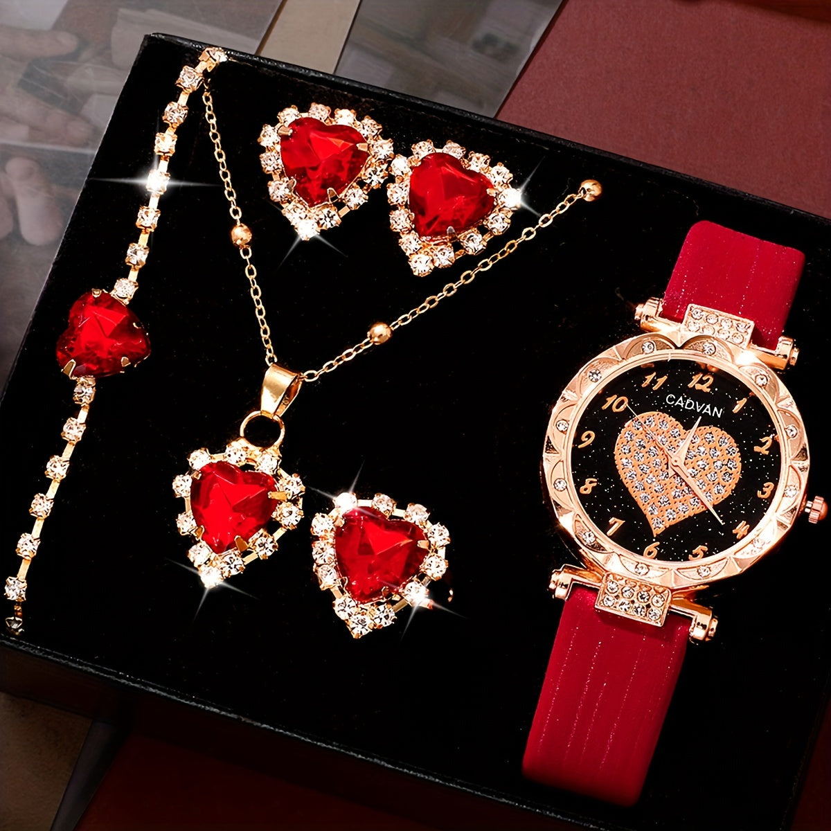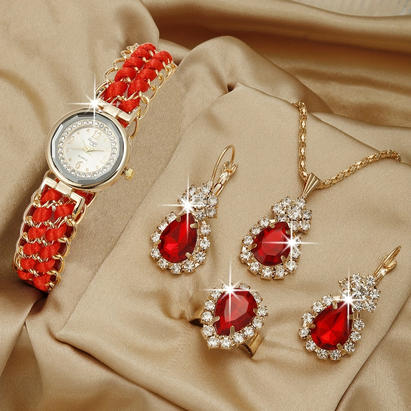 ساعة نسائية باروك موضة كوارتز سوار ساعة متألقة حجر الراين التناظرية ساعة معصم و 4 قطع مجموعة مجوهرات ، هدية لأميها