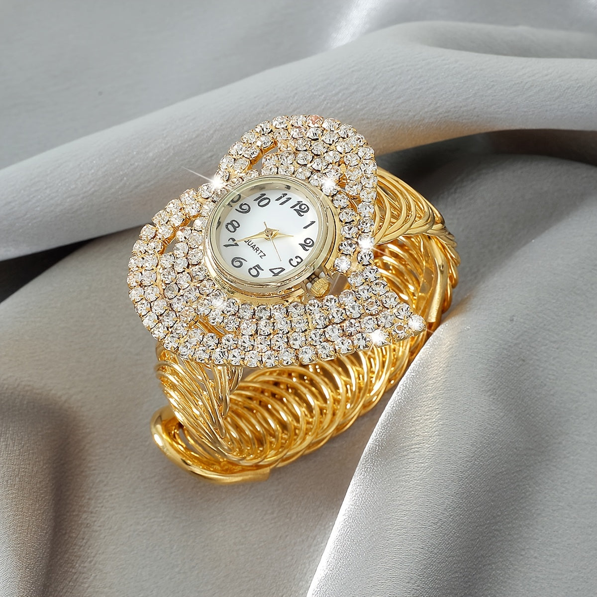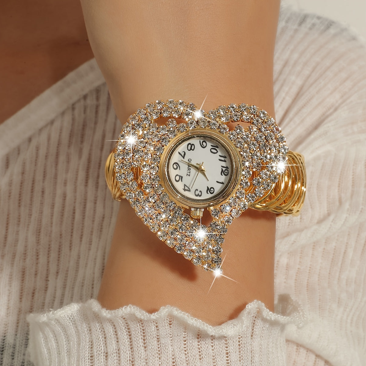 نساء بنات أنيق كريستال سوار الإسورة شكل قلب الطلب التناظرية الكوارتز ساعة اليد 1 قطعة
